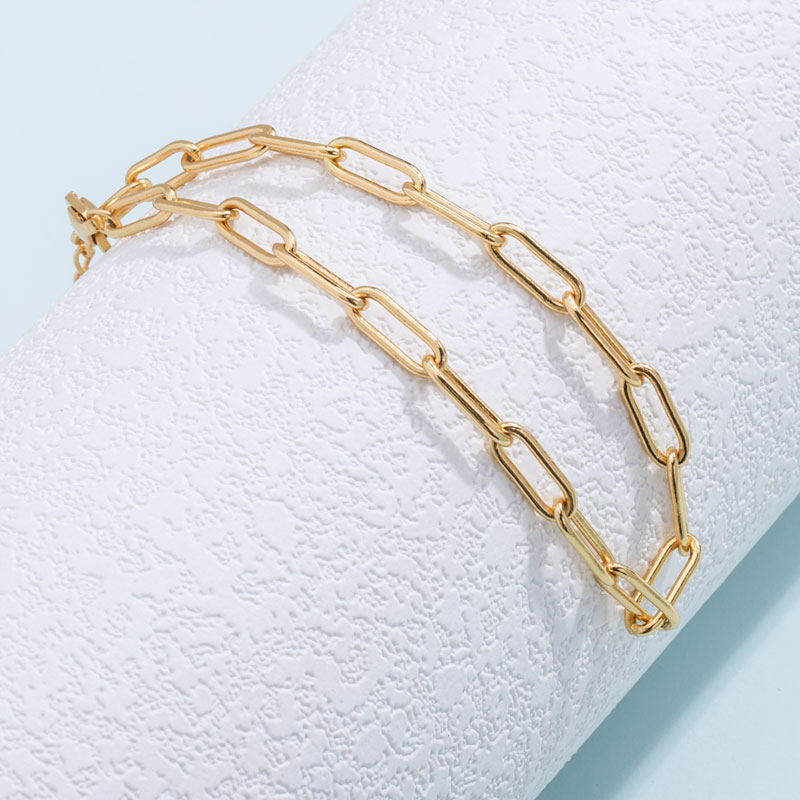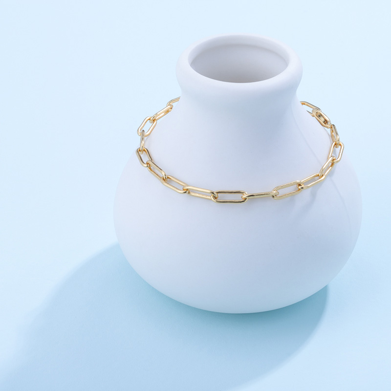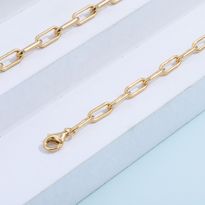 The gold paperclip bracelet is crafted in 925 sterling silver 18k yellow gold plated with fine jewelry craft.
