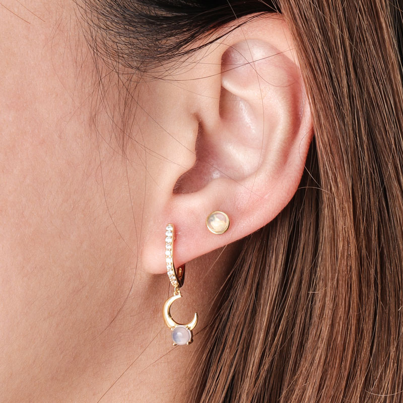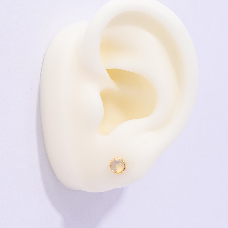 Tiny and cute, colorful moonstones radiate enchanting light. As a small stud earring, it goes well with other color earrings.