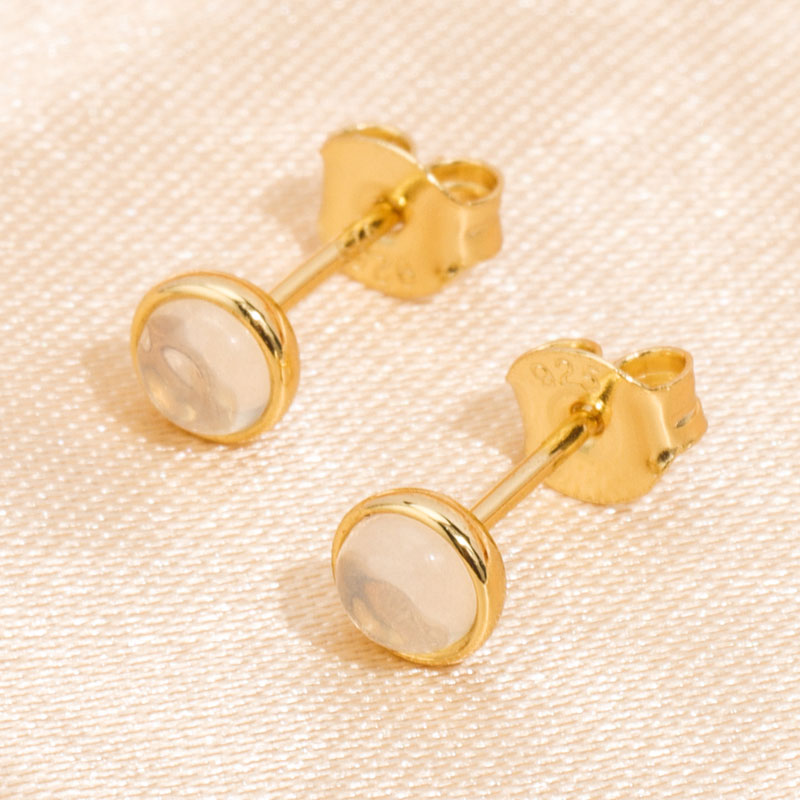 The moonstone studs are crafted in 925 sterling silver, 18k yellow plated. It is durable and waterproof.