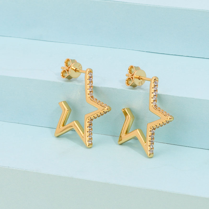 The gold star studs are crafted in 925 sterling silver 18k yellow gold plated with fine jewelry craft.