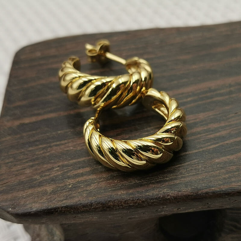 Hemp Rope Shape Bold Golden Sterling Silver Hoop Earring