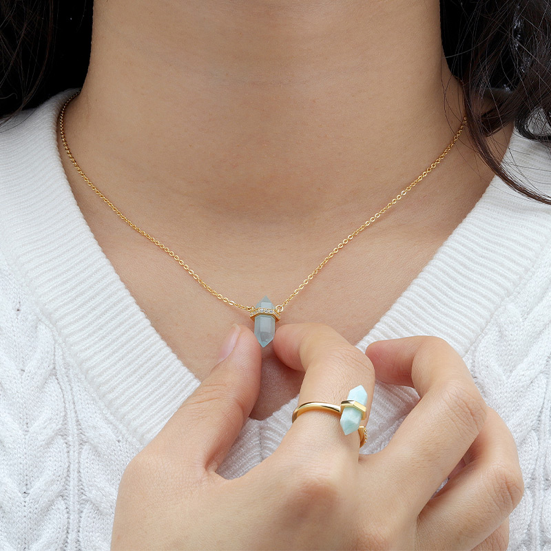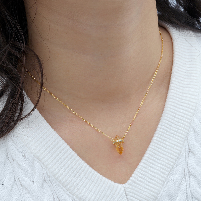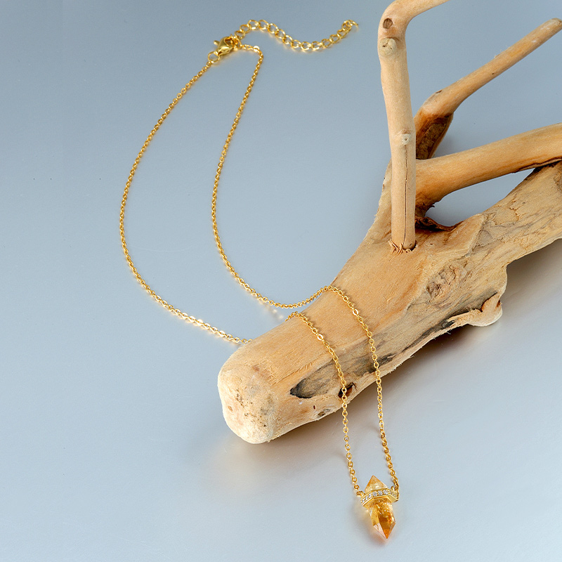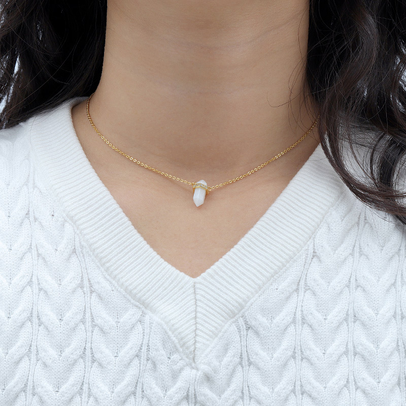 The Gem Rock Necklace is crafted in 925 sterling silver 18K gold plated with fine jewelry craft.