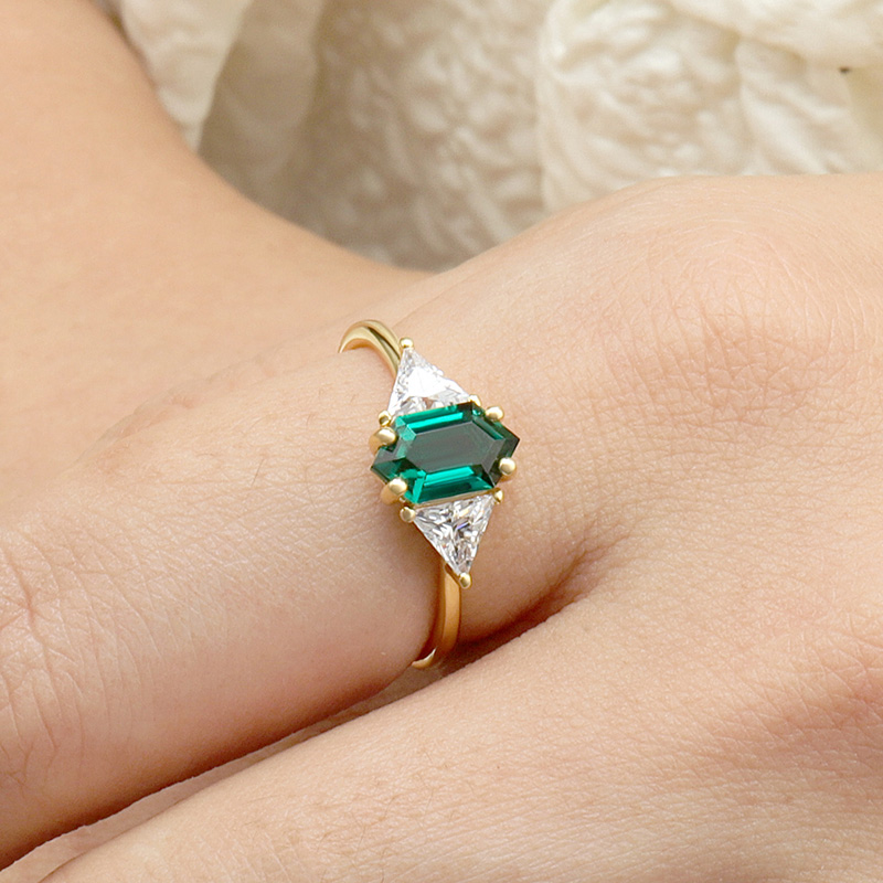AvailableHexagon Lab Grown Emerald Ring Set