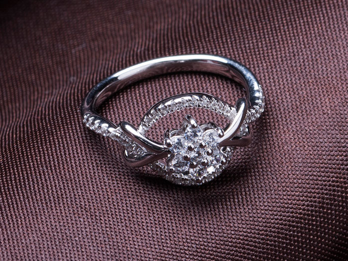 Women sterling silver engagement jewelry ring with hexagram design and setting with many shiny AAA cubic zircon stones.