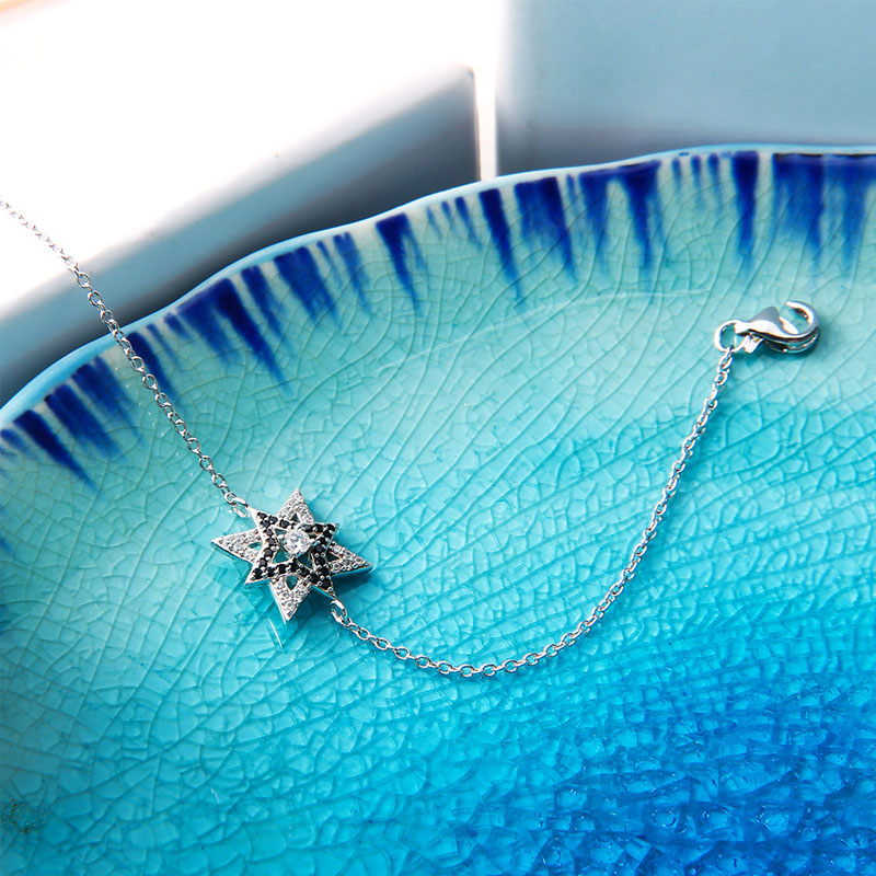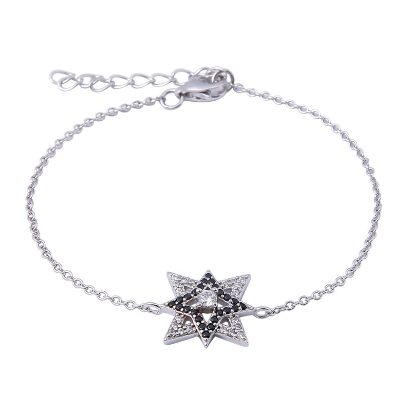 This hexagram style S925 silver jewelry bracelets is made up of black and white AAA CZ stone and displaying a hexagram shape. Unique design for the special person.