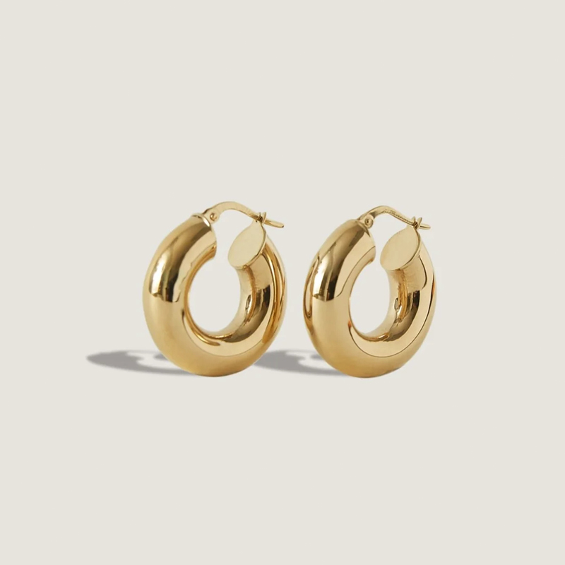 The Hollow Bold Huggie Hoops is crafted in 925 sterling silver gold plated with fine jewelry craft.