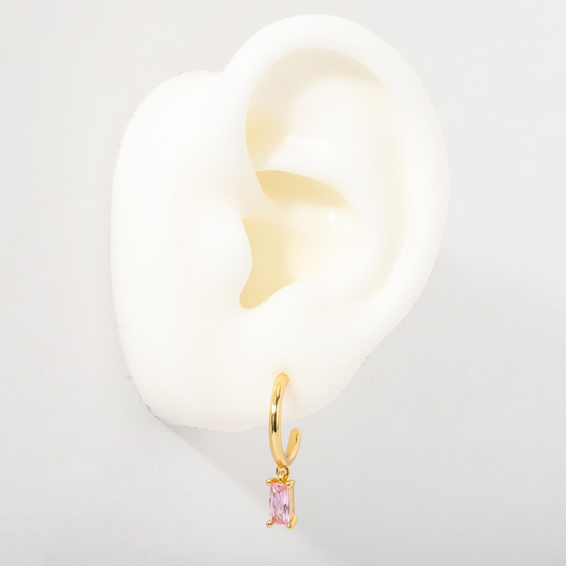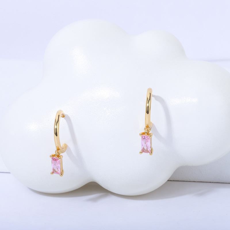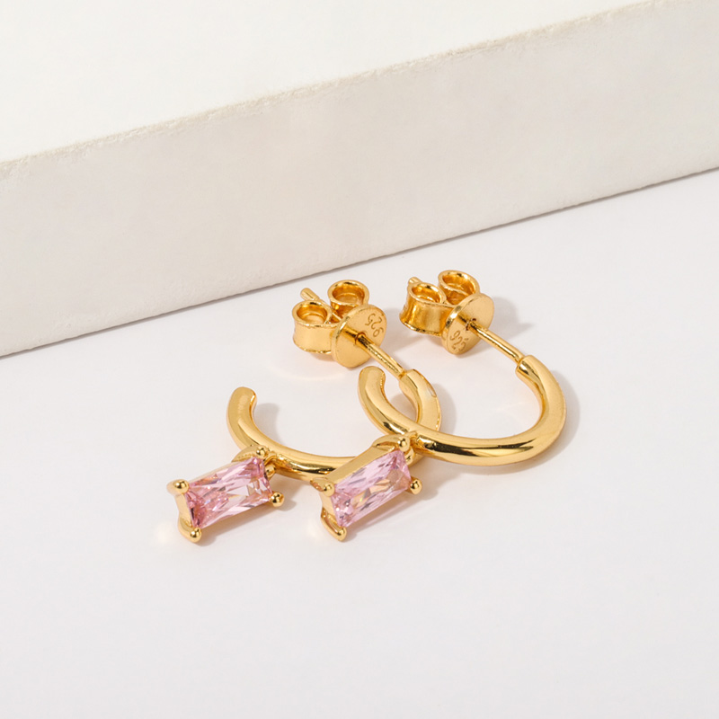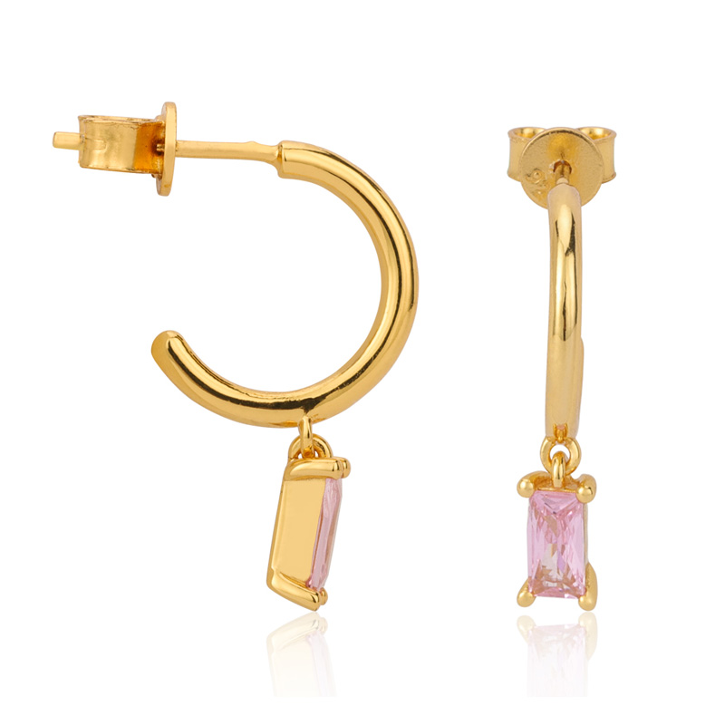 Hoop Dangle Earring Baguette Pink Crystal Charm