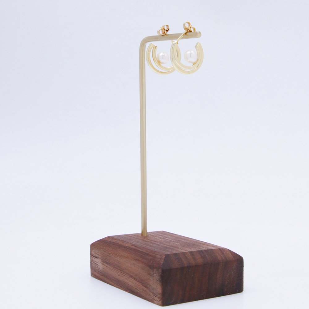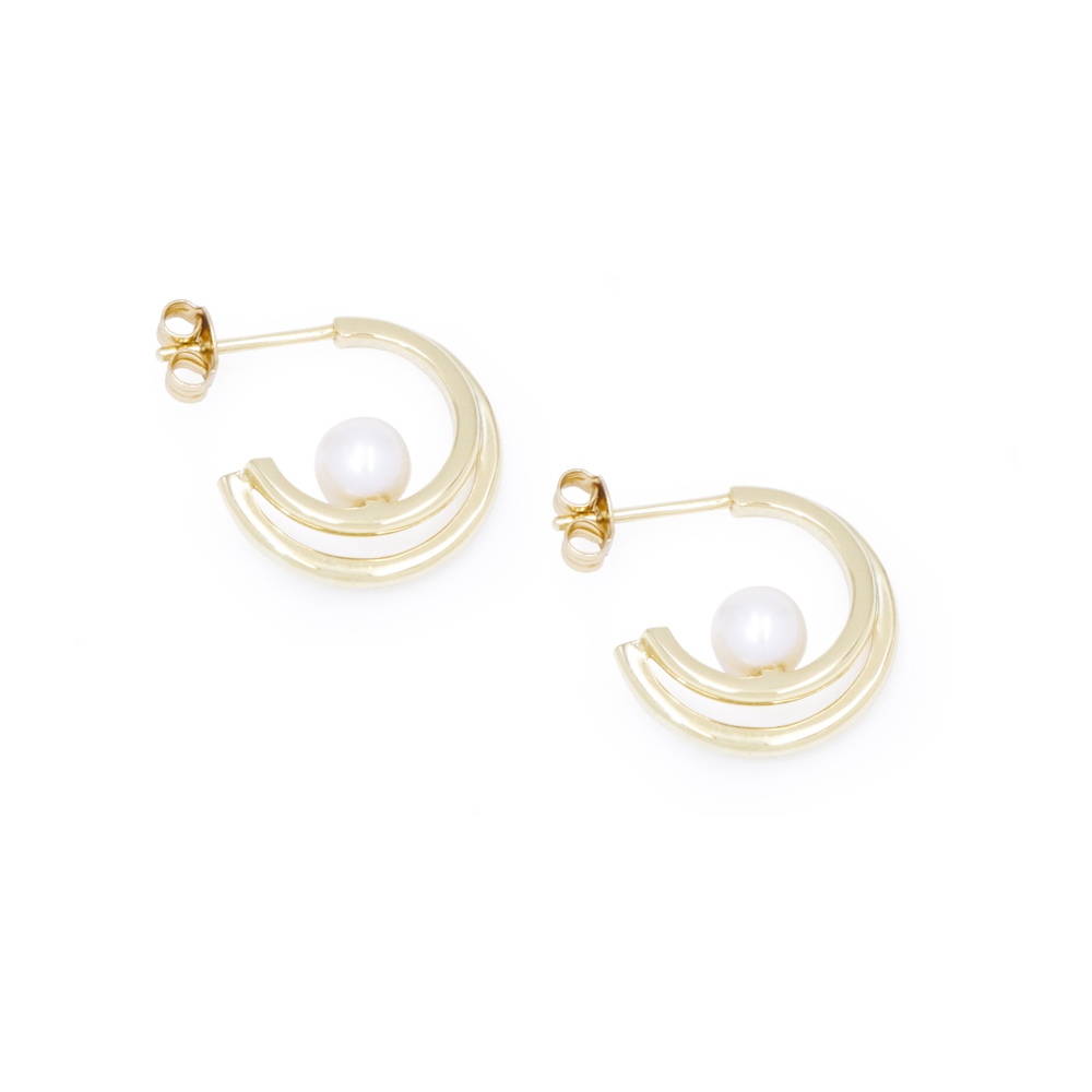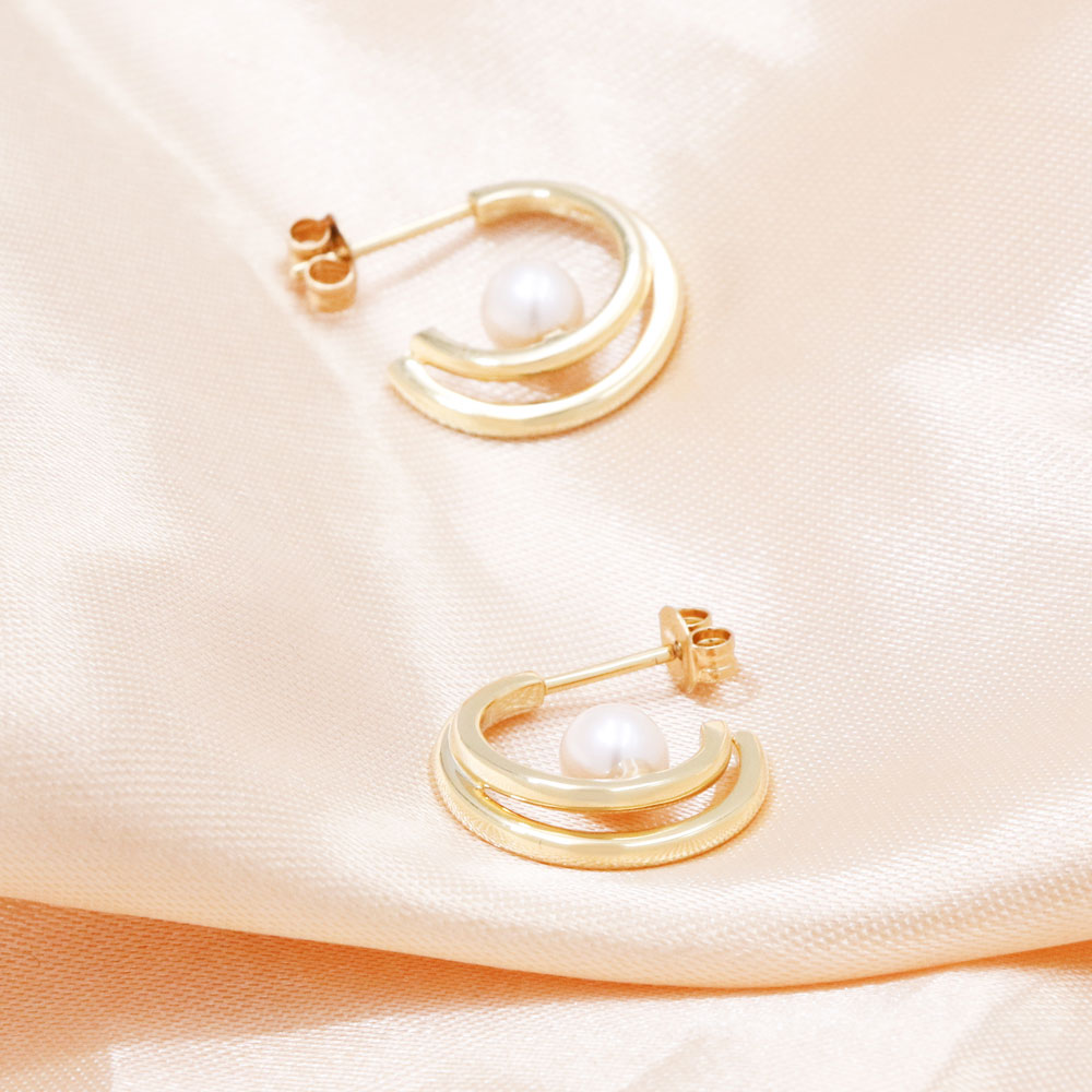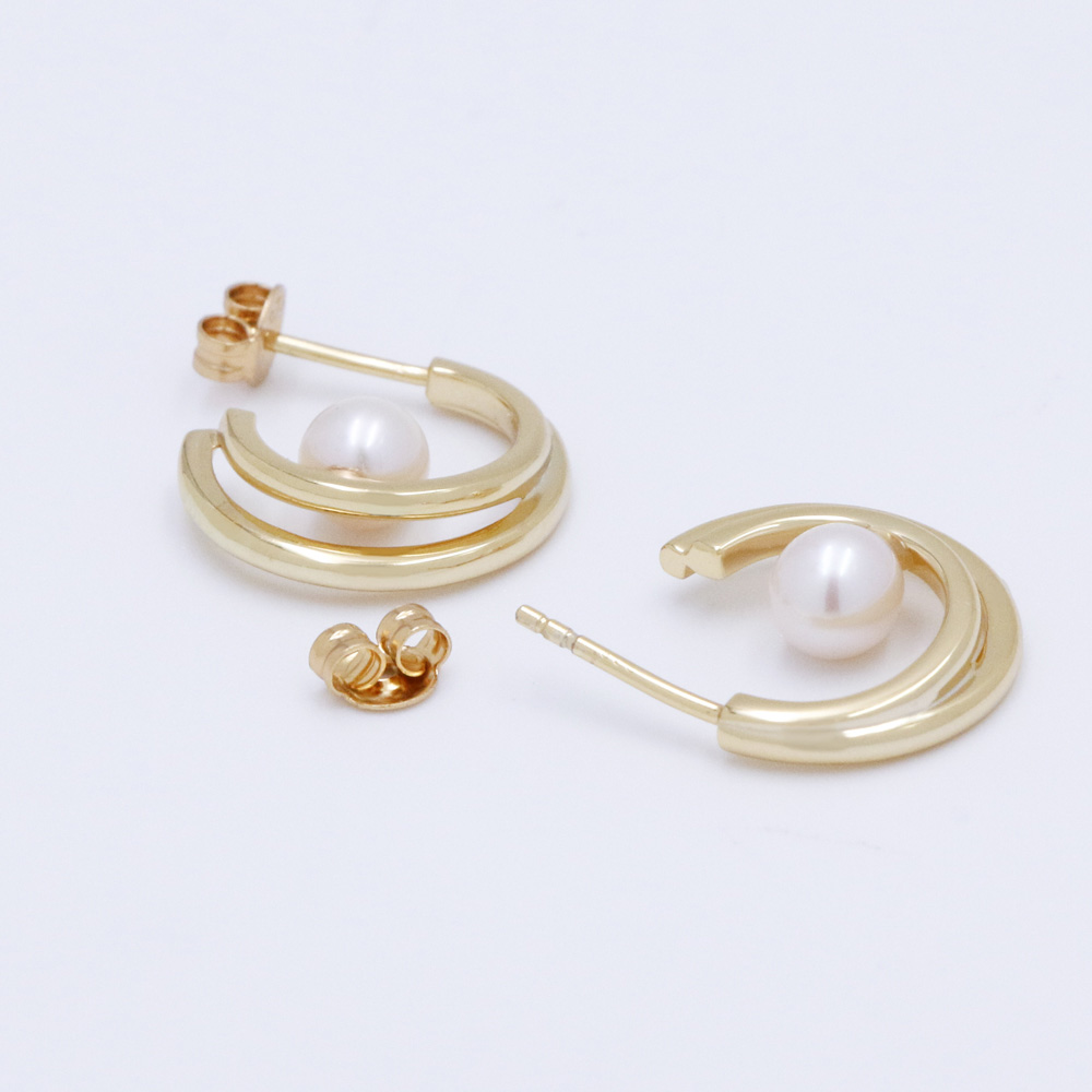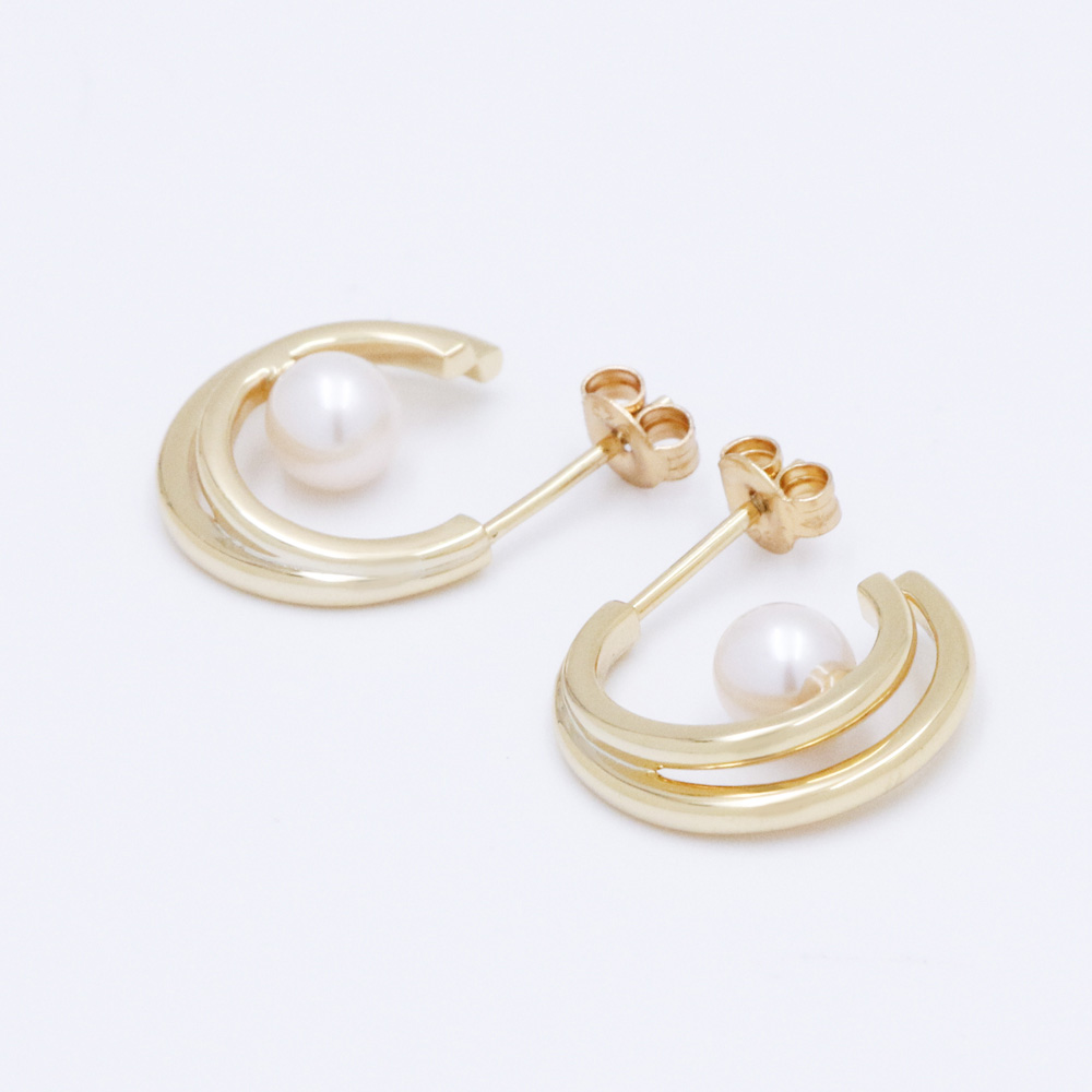 14K/18K YellowHoop Ear Studs for Women Gold Color With Pearls