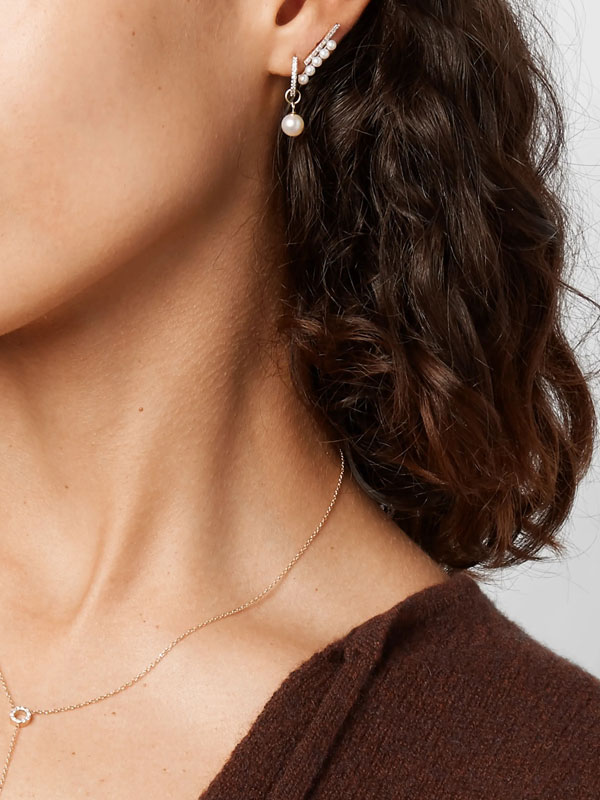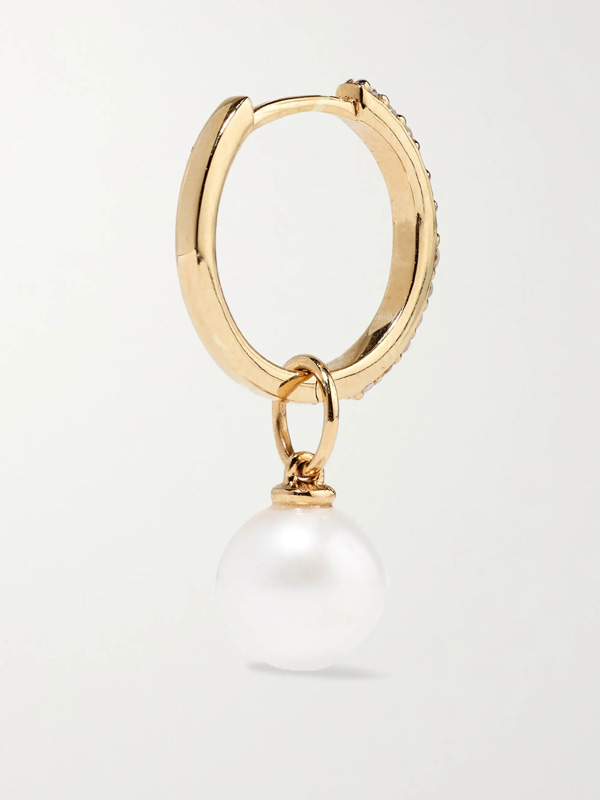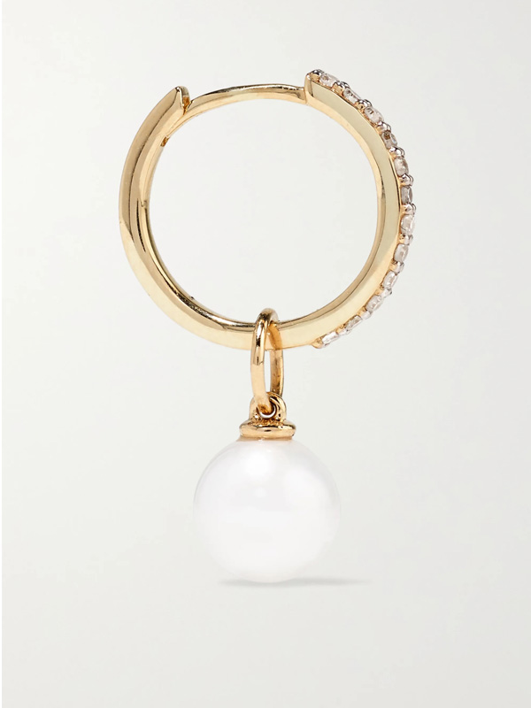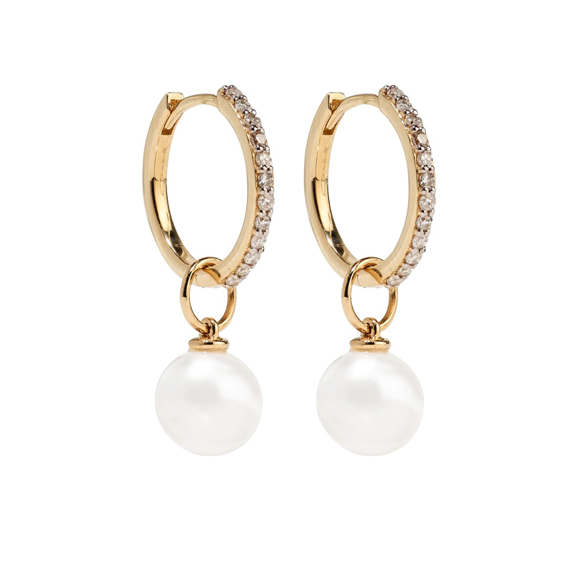 14K/18K YellowHuggie Hoop Sterling Silver Pearl Earrings Pave Cubic Zircon Gold Plated