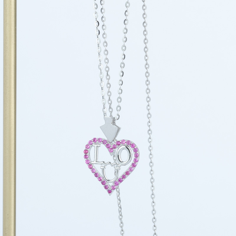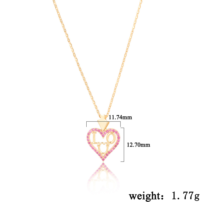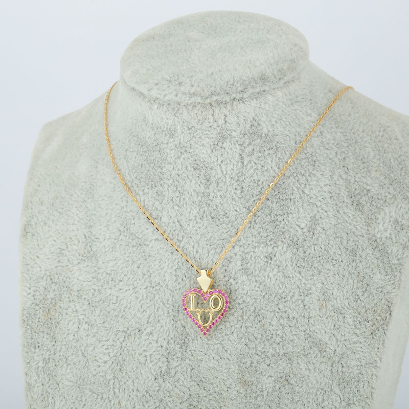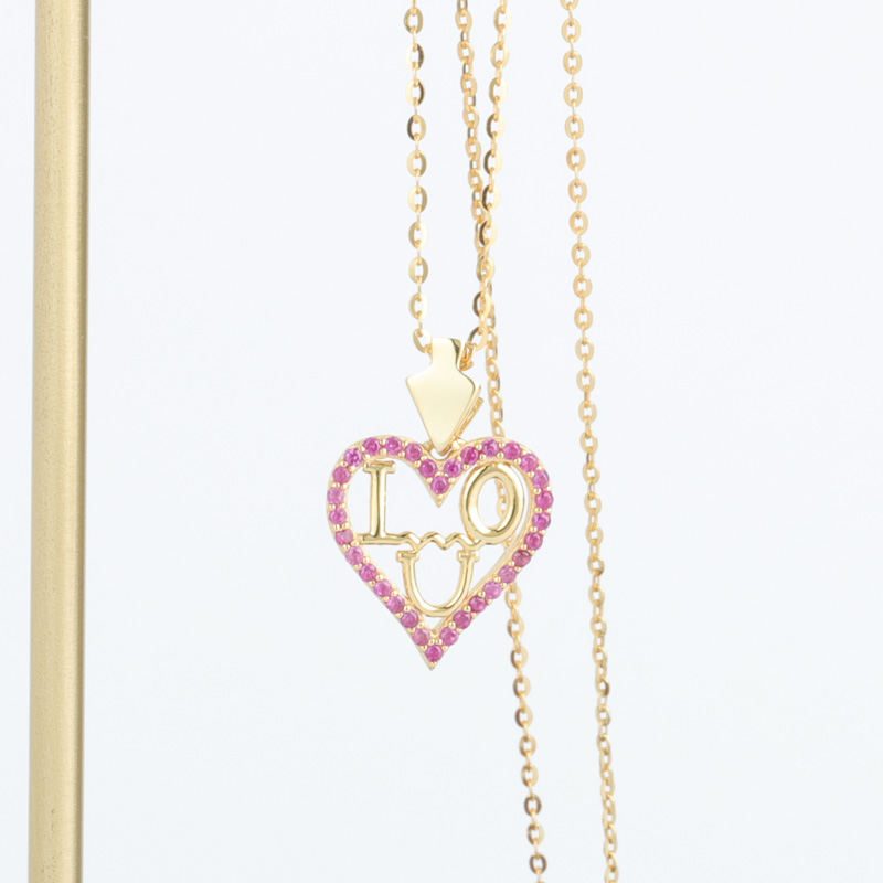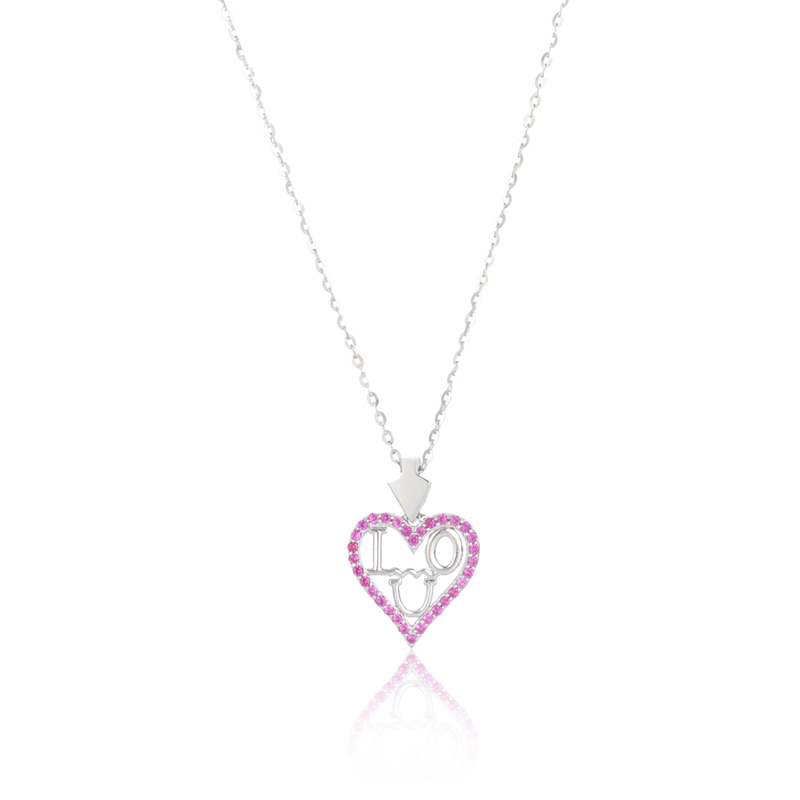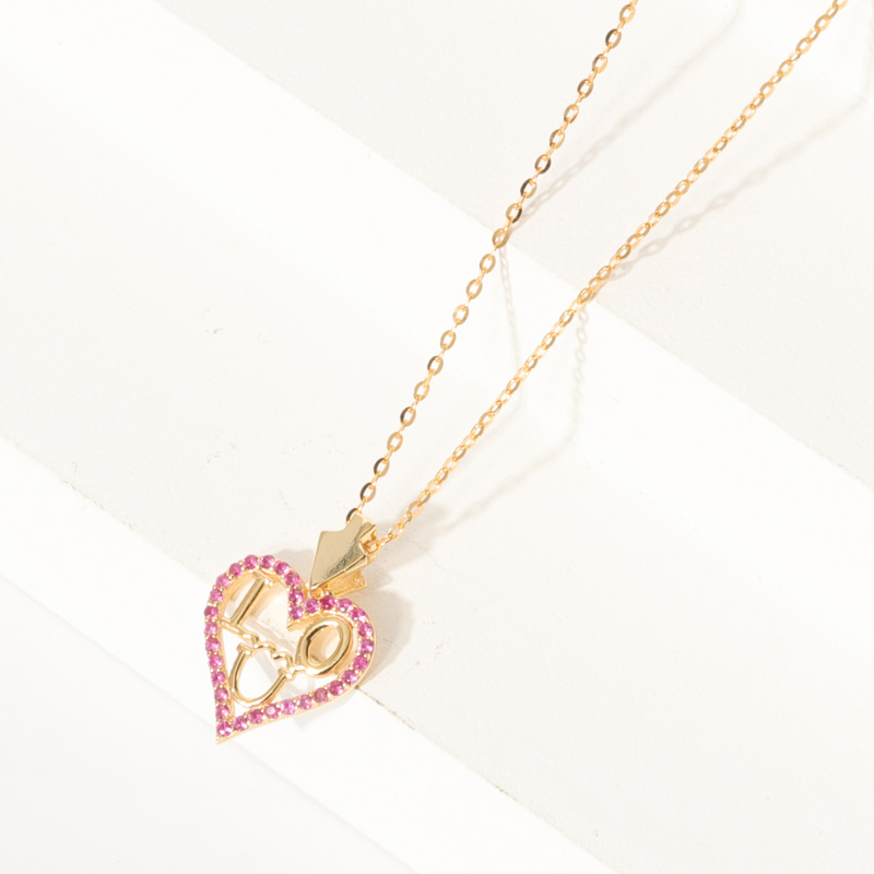 18k Yellow/WhiteI Love You Heart Silver Pendant Necklace Pink CZ