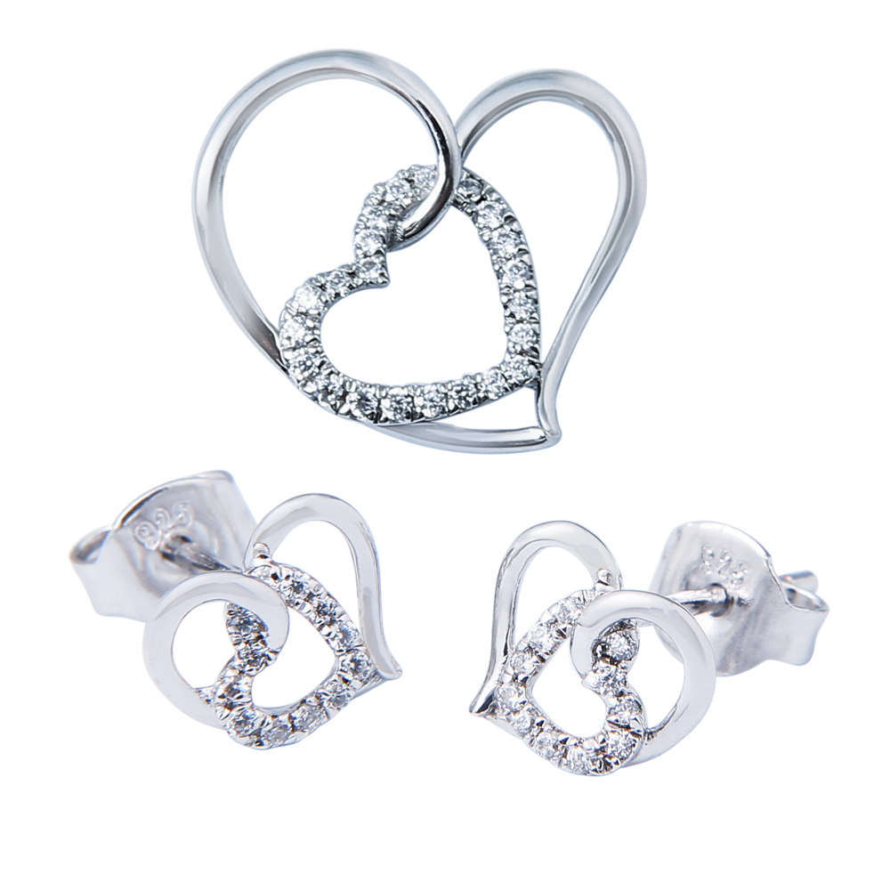 The special intertwined heart jewelry set with popular simple streamlined design in good sales by it's silver white design color and lovely sets.