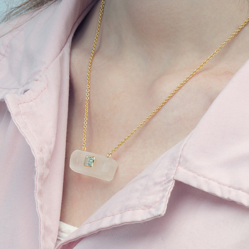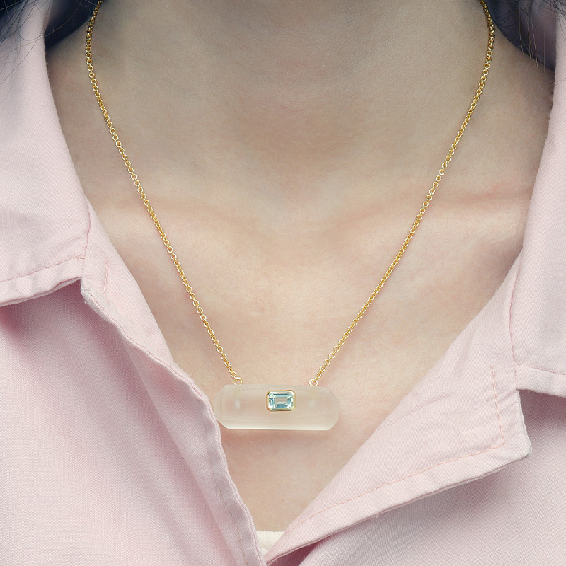 The Irregular Bar White Crystal Healing Necklace is crafted in 925 sterling silver gold plated with fine jewelry craft.