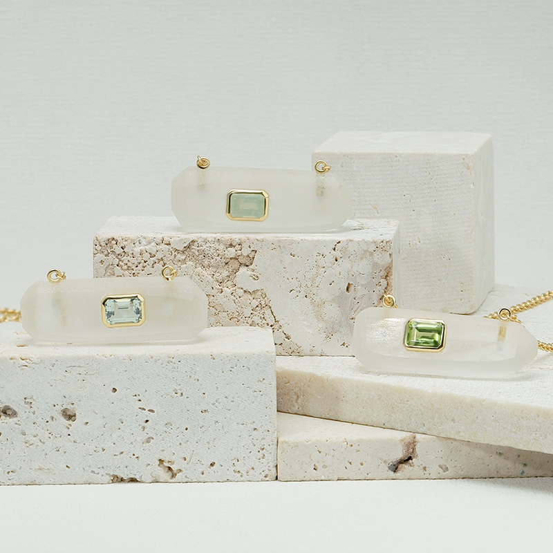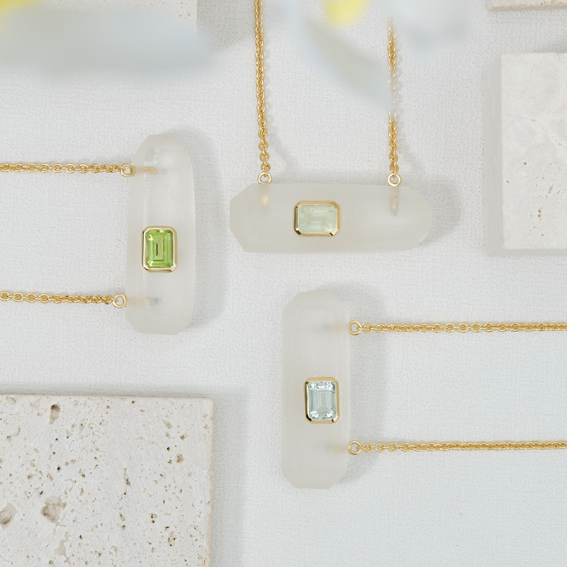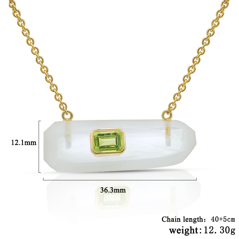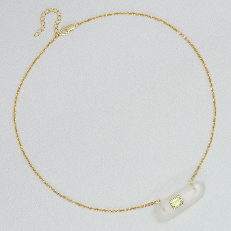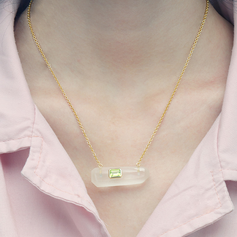 AvailableIrregular Bar White Crystal Healing Necklace Bezel Set Peridot