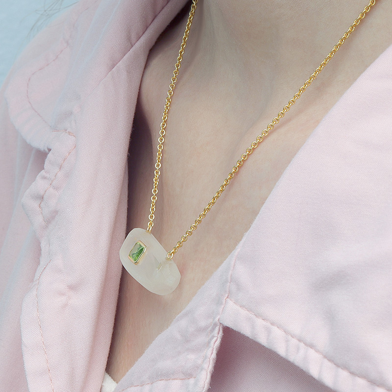 The Irregular Bar White Crystal Healing Necklace is crafted in 925 sterling silver gold plated with fine jewelry craft.