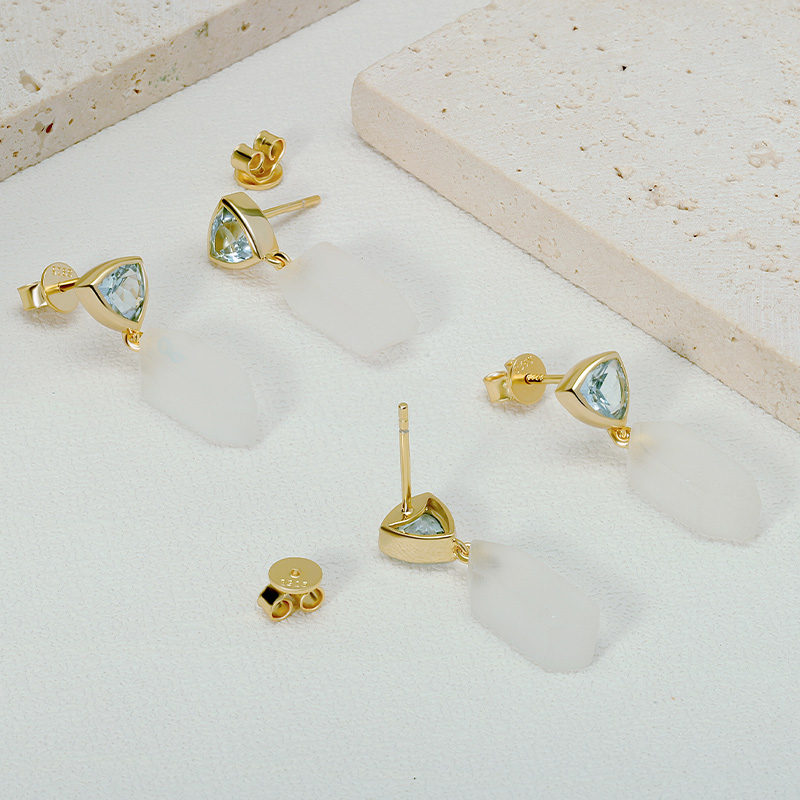 The Irregular Crystal Drop Earring is crafted in 925 sterling silver gold plated with fine jewelry craft.