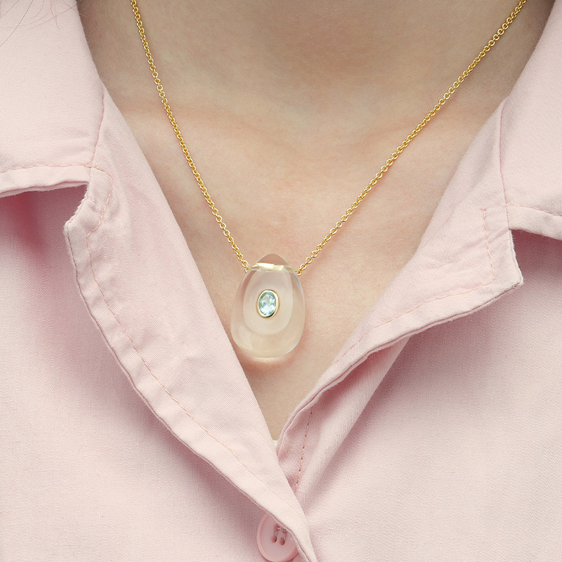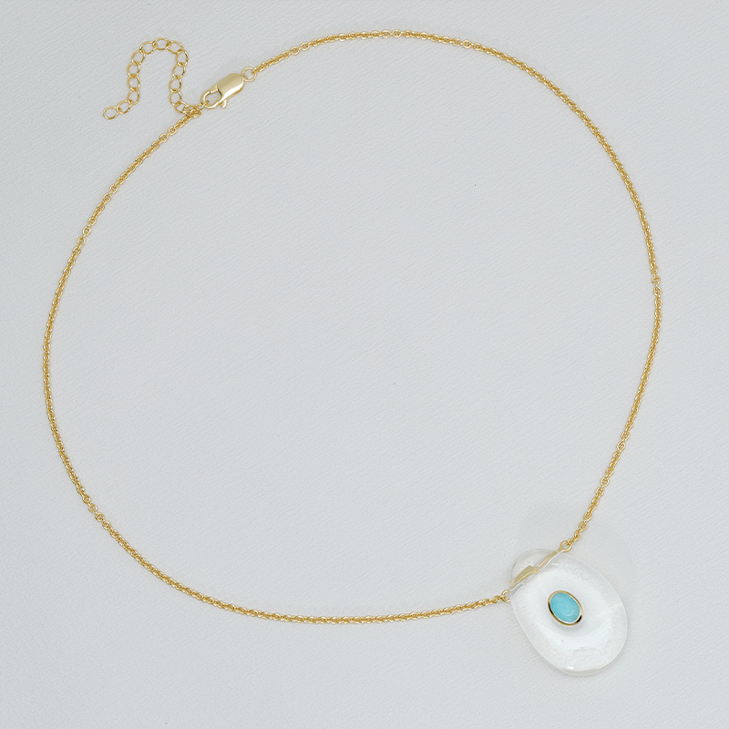 The Irregular Pear Shape White Crystal Healing Necklace is crafted in 925 sterling silver gold plated with fine jewelry craft.
