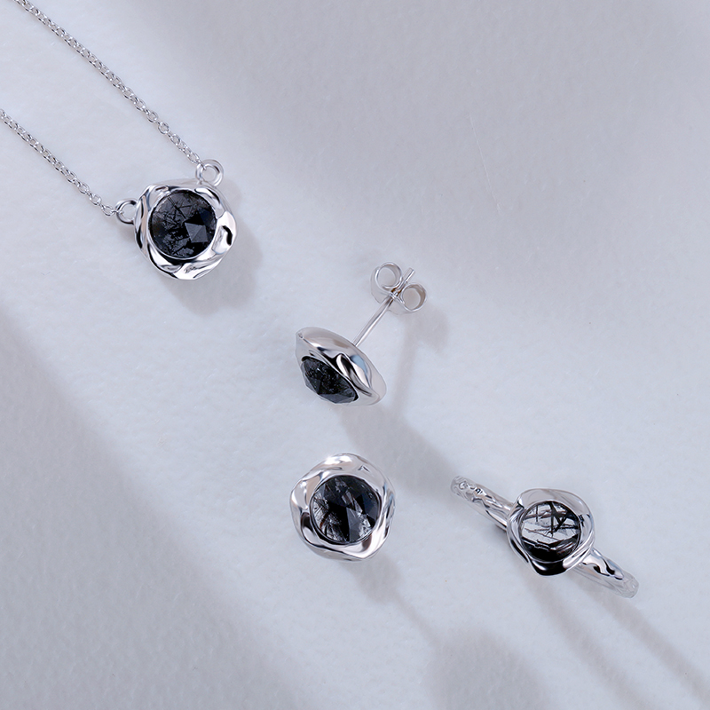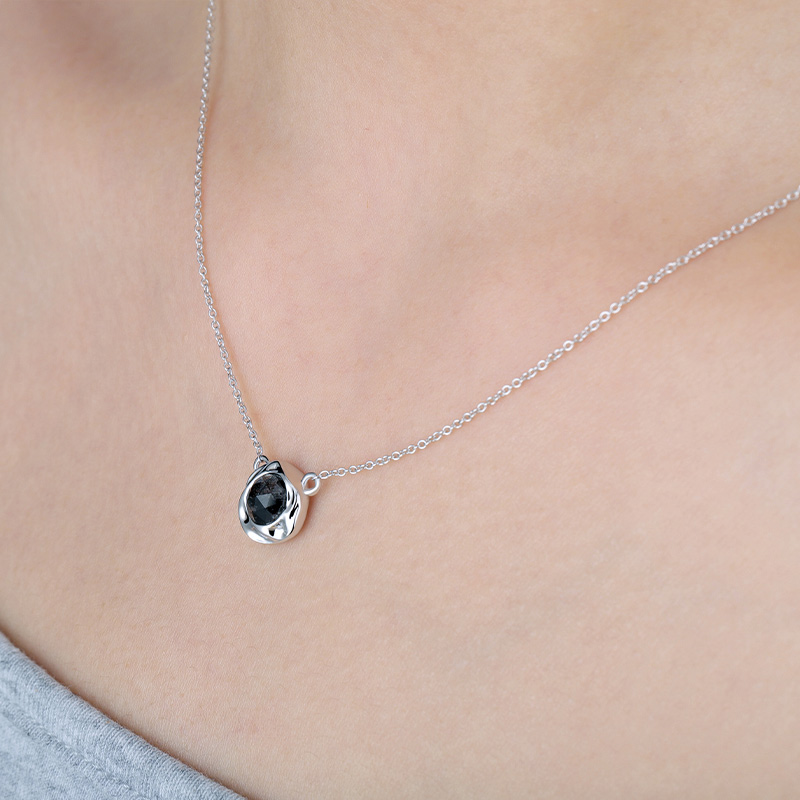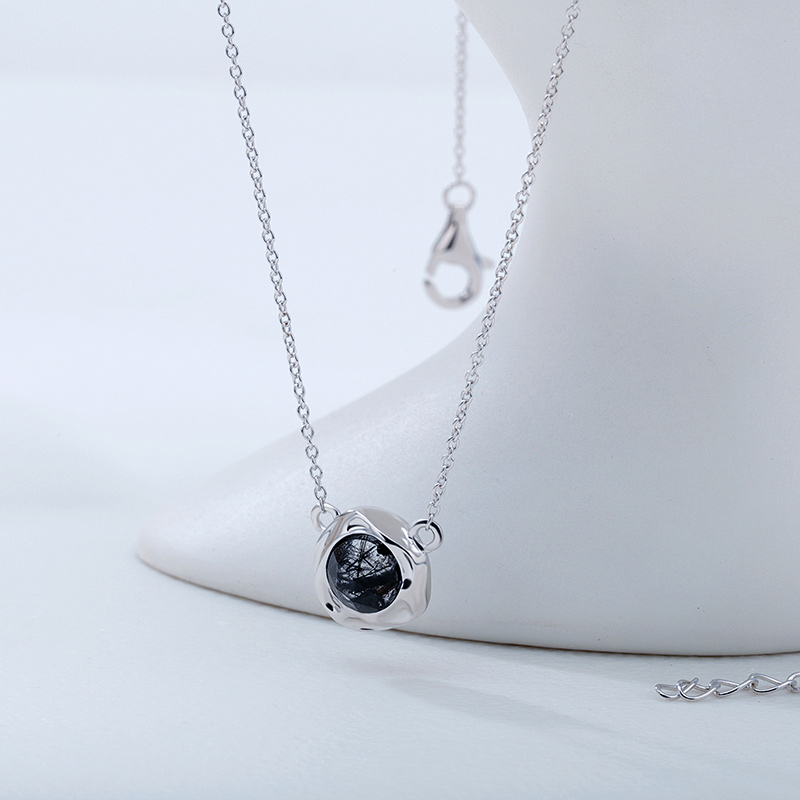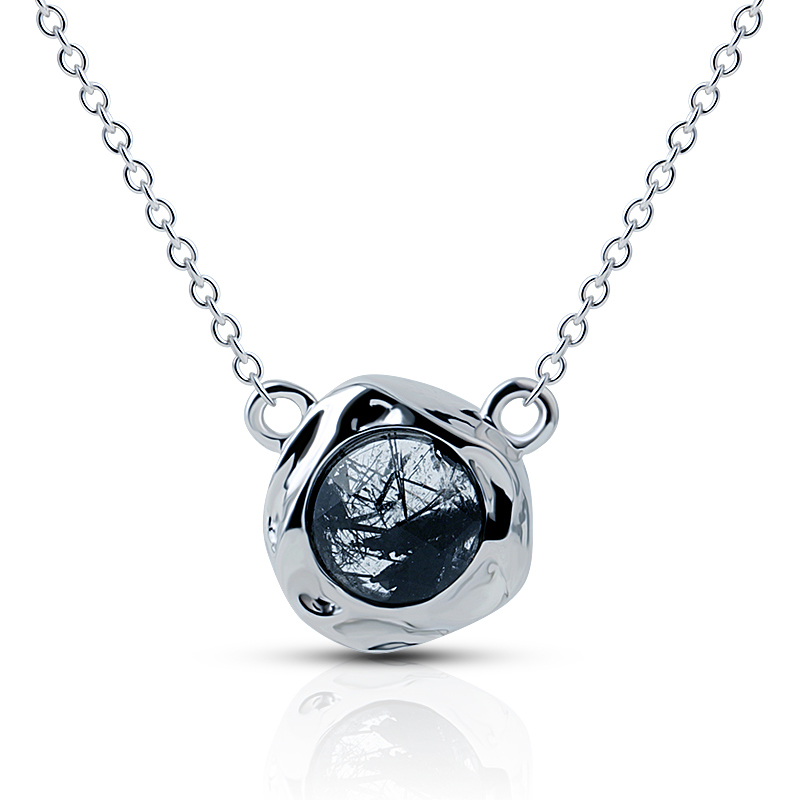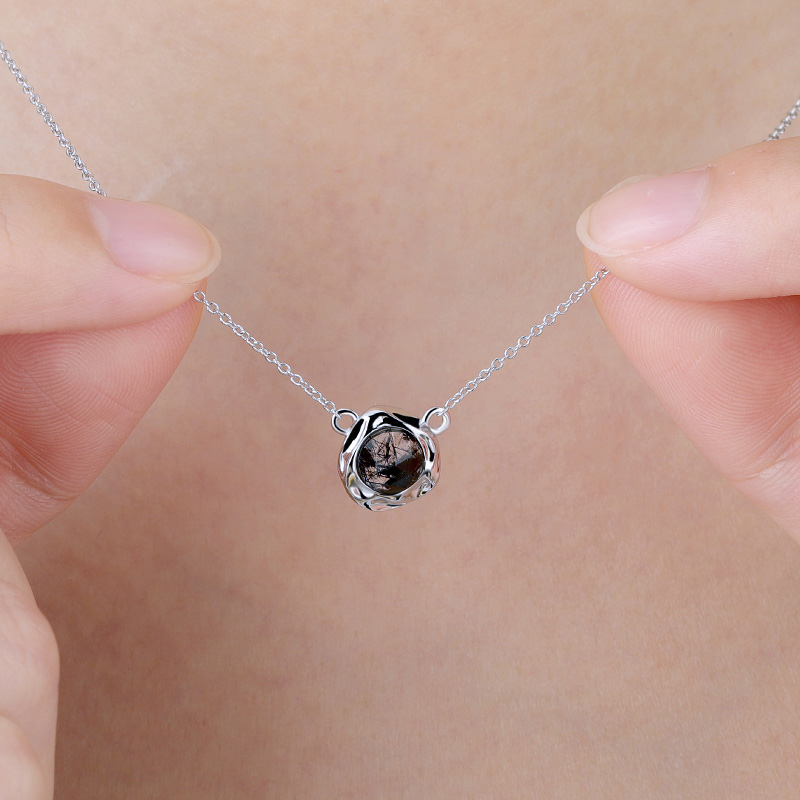 The Irregular Texture Black Rutilated Quartz Pendant Necklace is crafted in 925 sterling silver 18k gold plated with fine jewelry craft.