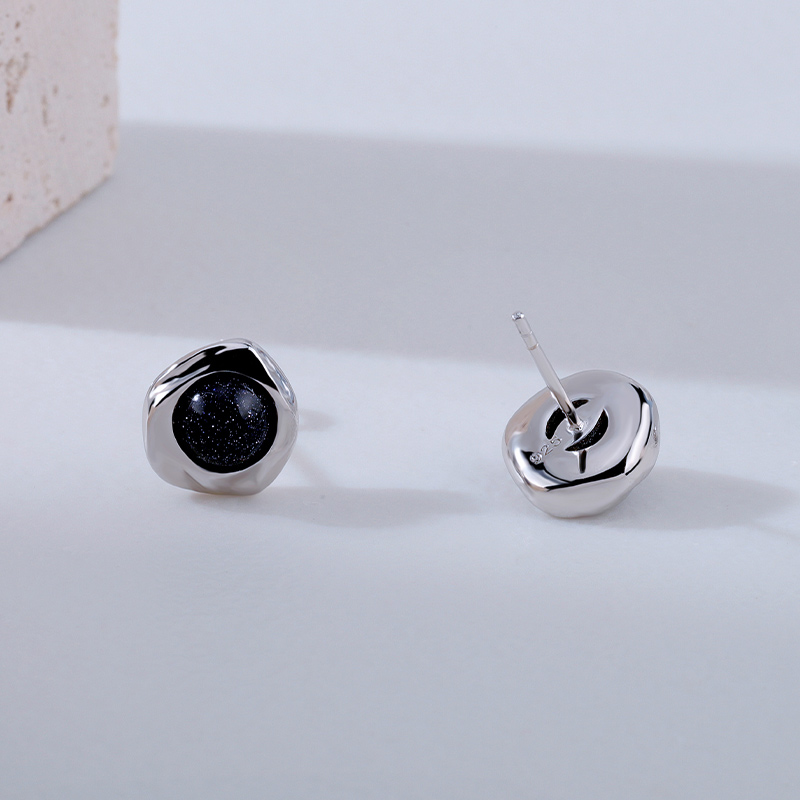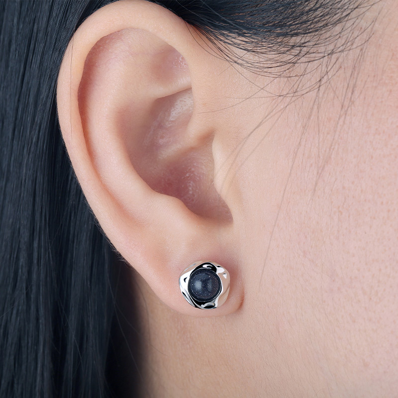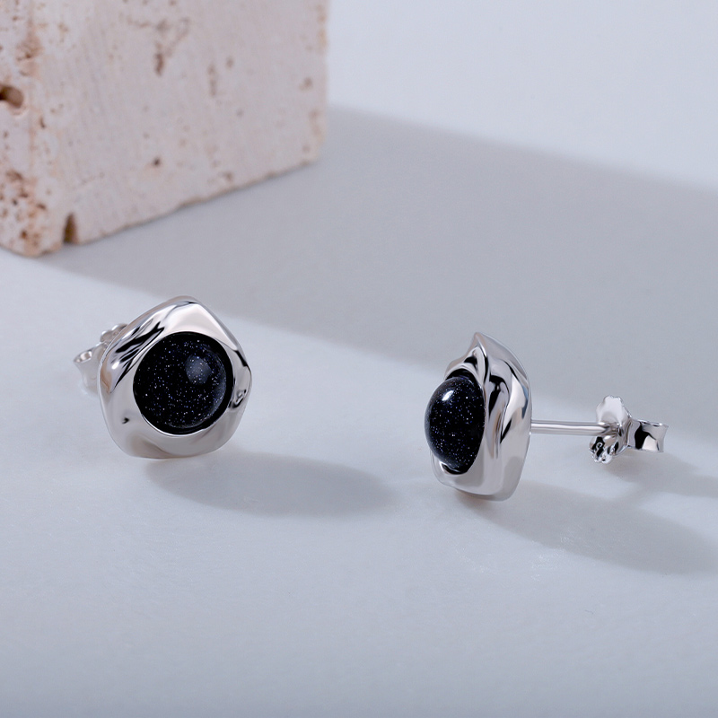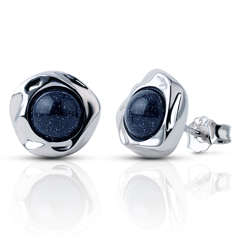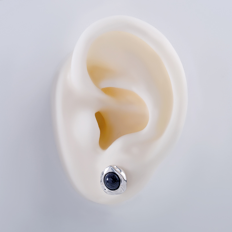 The Irregular Texture Blue Aventurine Stud Earring is crafted in 925 sterling silver 18k gold plated with fine jewelry craft.