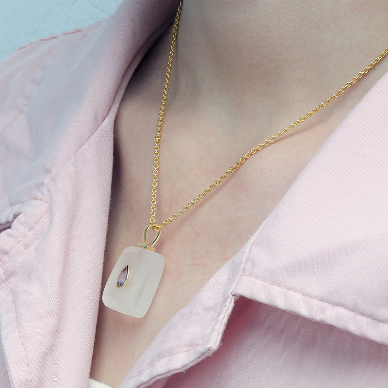 The Irregular White Crystal Healing Necklace is crafted in 925 sterling silver gold plated with fine jewelry craft.