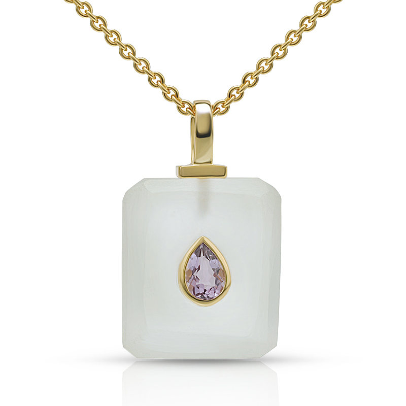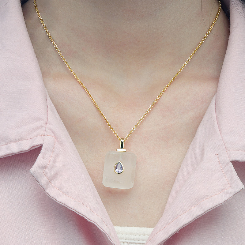 AvailableIrregular White Crystal Healing Necklace Bezel Set Amethyst