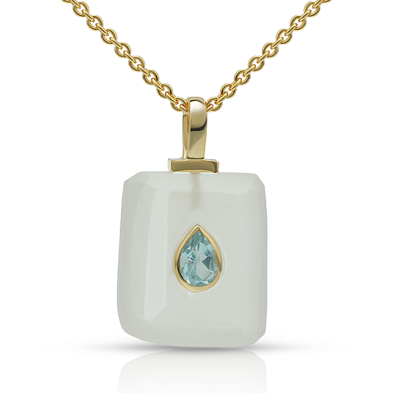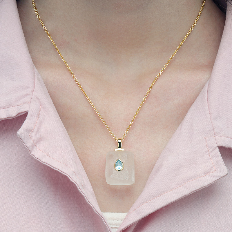 AvailableIrregular White Crystal Healing Necklace Bezel Set Sky Blue Topaz