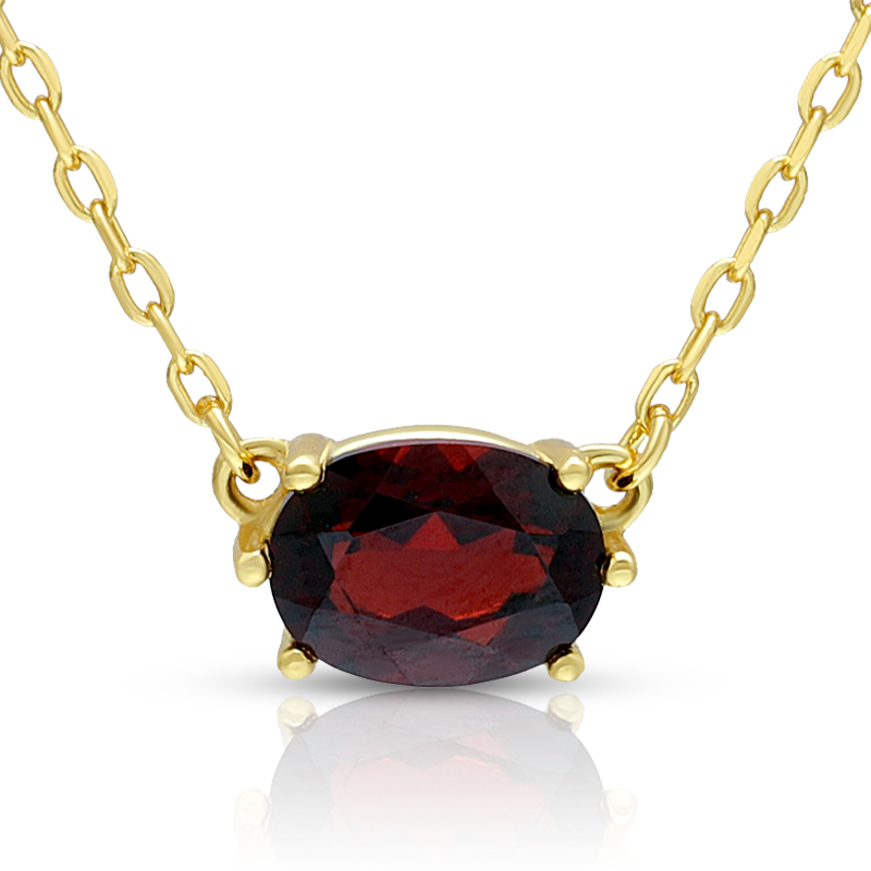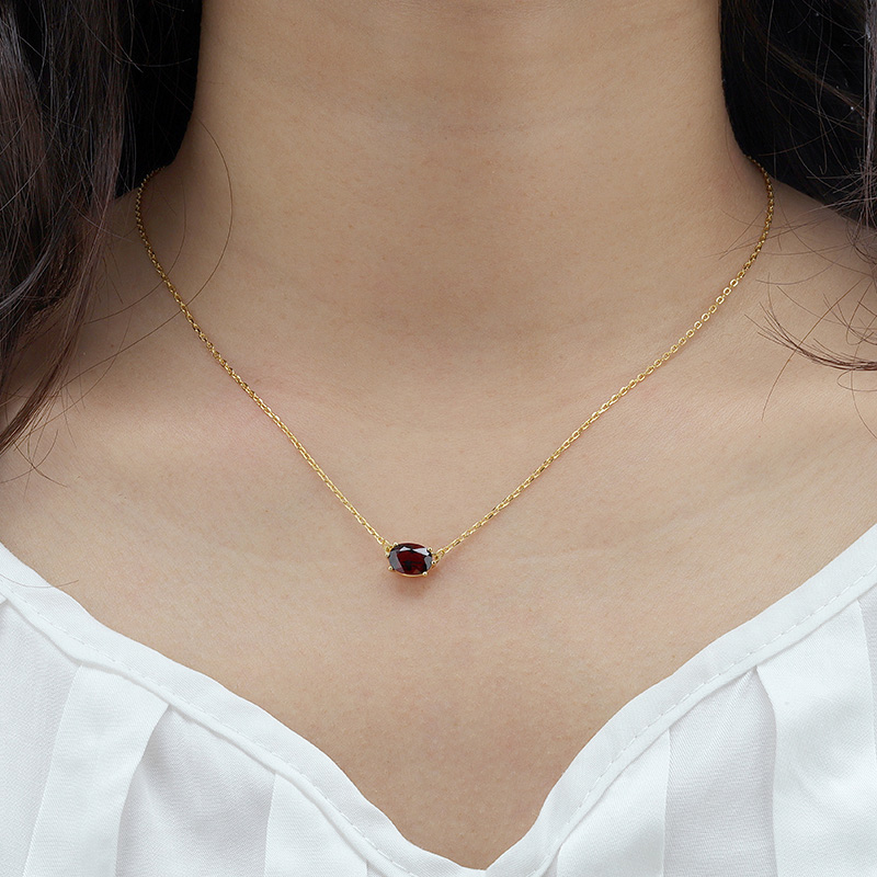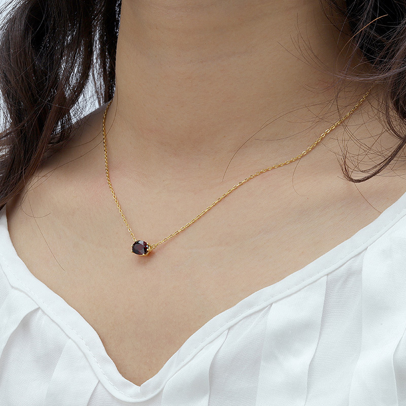 The January Garnet Birthstone Necklace is crafted in 925 sterling silver gold plated with fine jewelry craft.