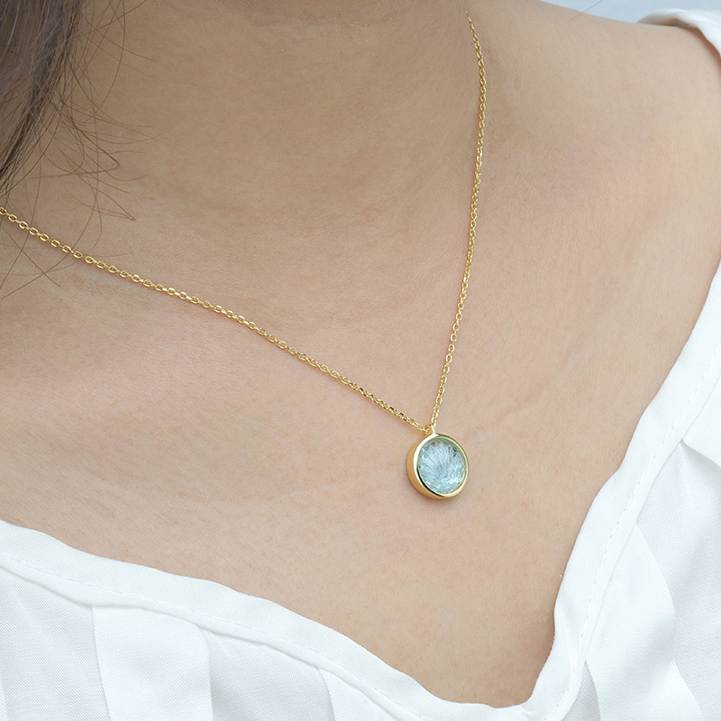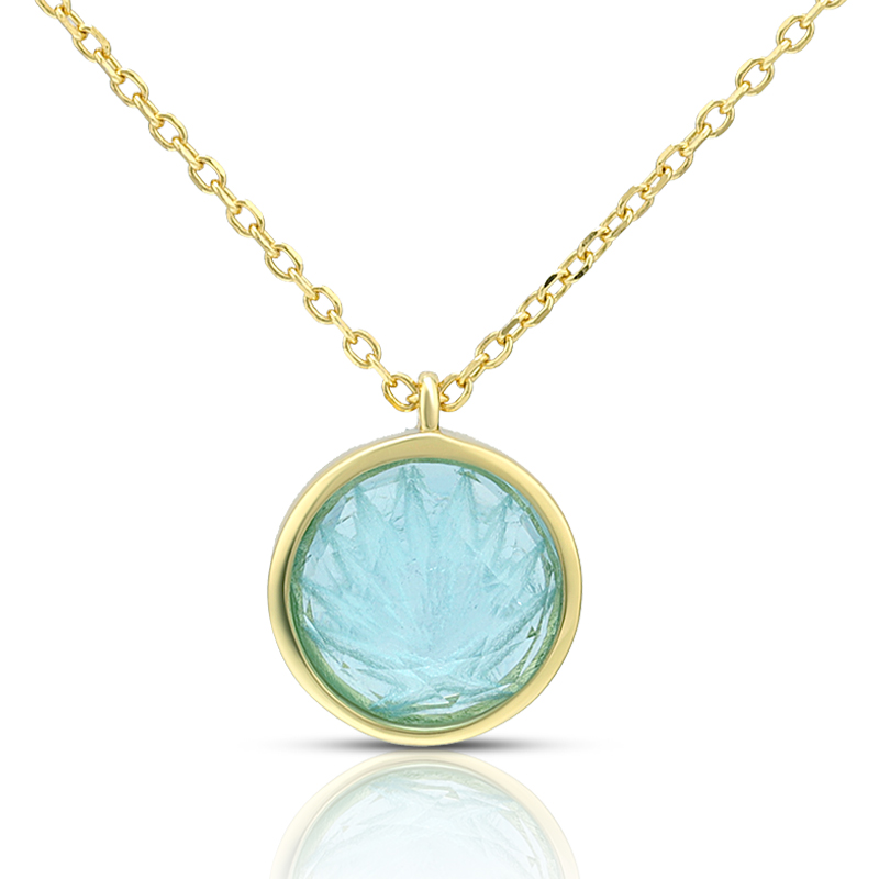 The Japanese Kiriko Sky Blue Crystal Pendant Necklaceis crafted in 925 sterling silver gold plated with fine jewelry craft.