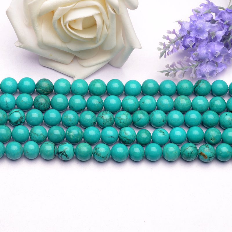Blue turquoise loose gemstone beads for jewelry design. Different sizes from 6mm to 12mm for you to choose. All gemstone beads are high quality without flaw.