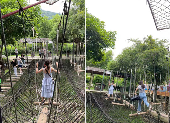 1. For the first time for the female team to challenge the Wuyou Valley adventure plank, it needs a lot of strength and balance control, otherwise you will fall into the net, and if you fail, you will need to start again. This challenge does not require any equipment. What's great is that our girls have successfully completed the challenge.