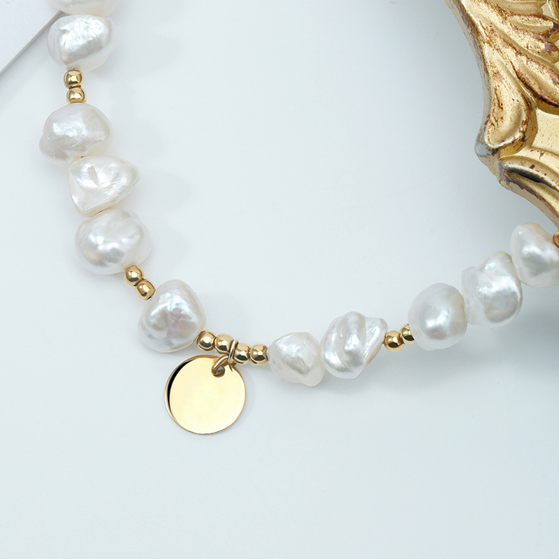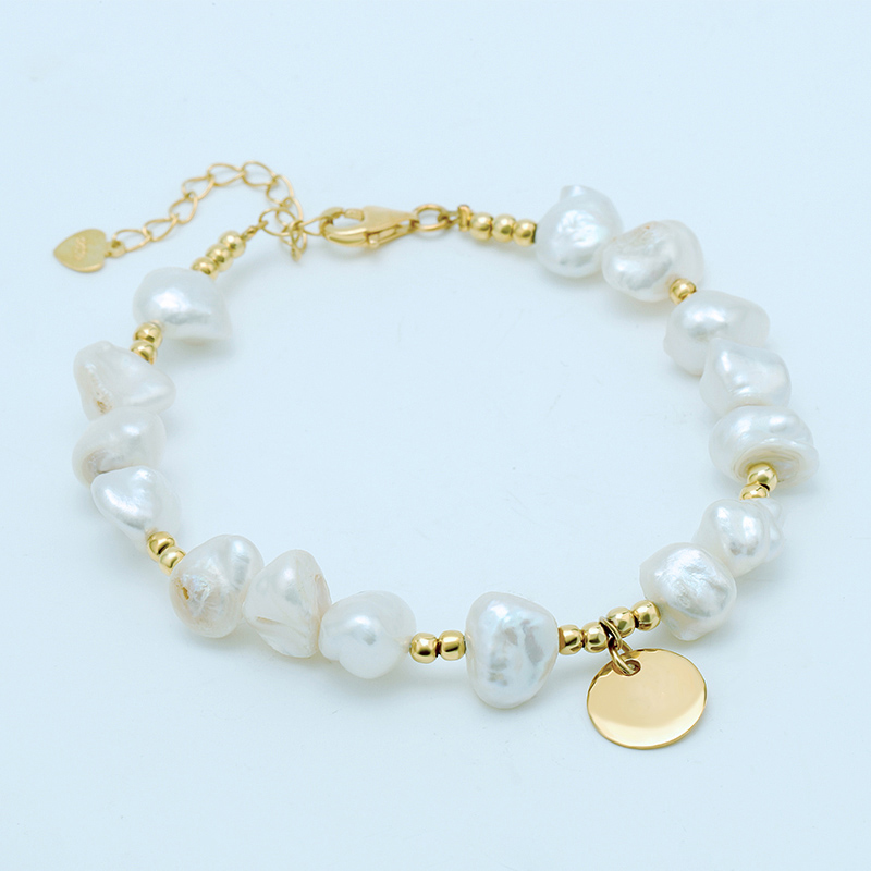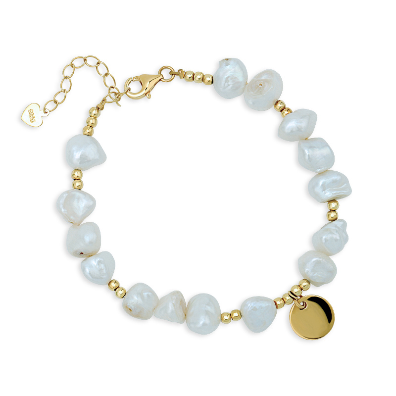 The Keshi Pearl Bracelet With Disc is crafted in 925 sterling silver gold plated with fine jewelry craft.