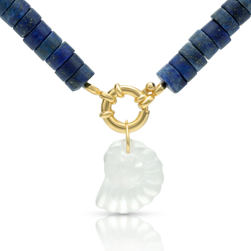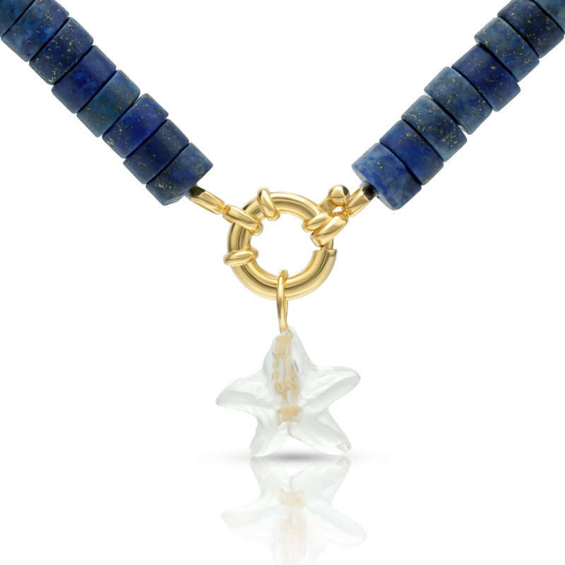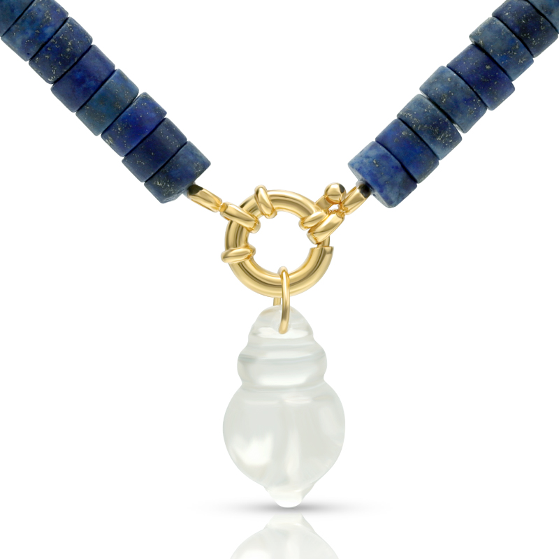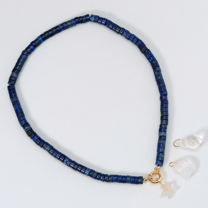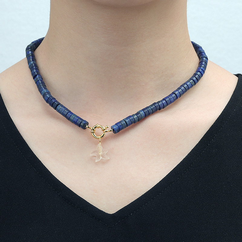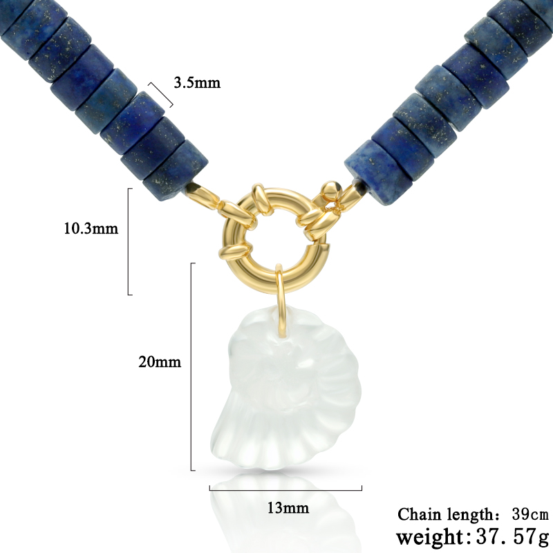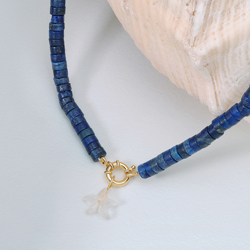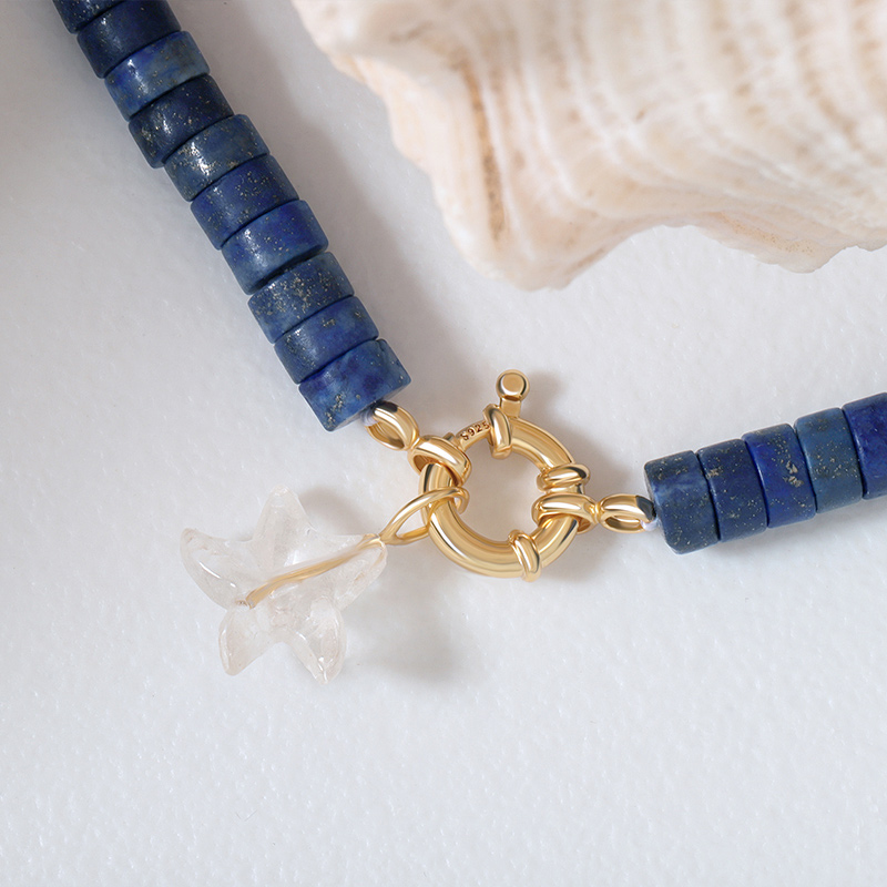 The Lapis Lazuli Bead Necklace is crafted in 925 sterling silver gold plated with fine jewelry craft.