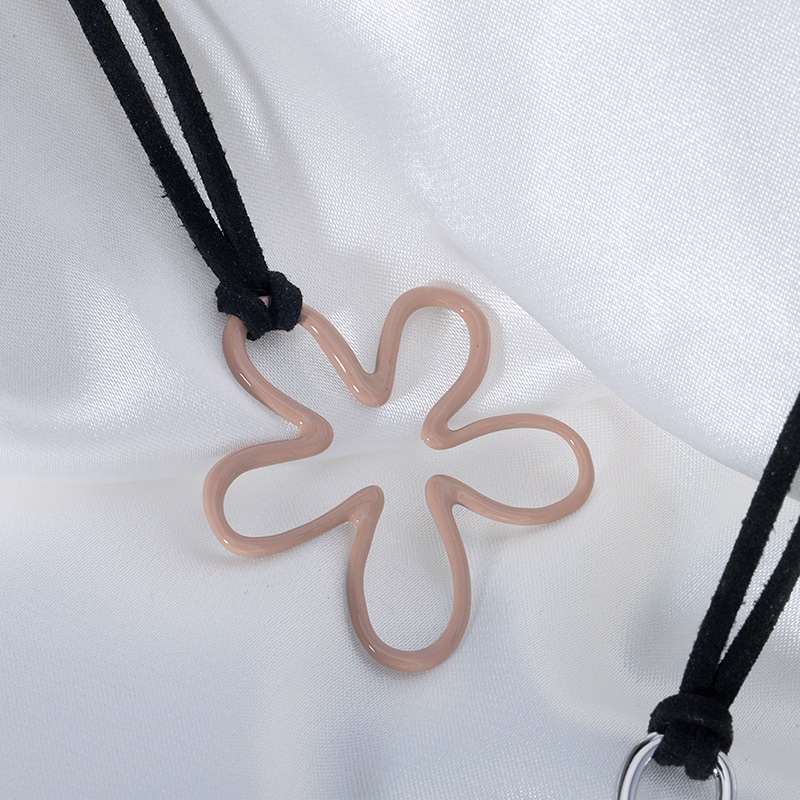 Leather Necklace Enamel Flower Pendant