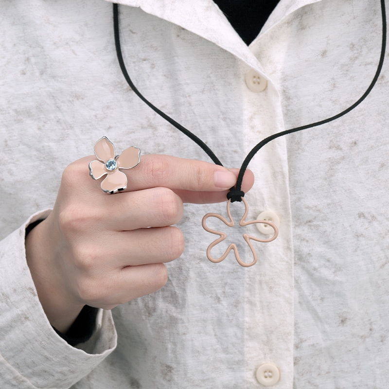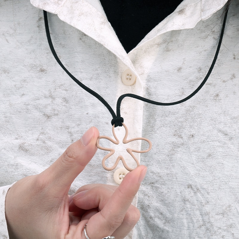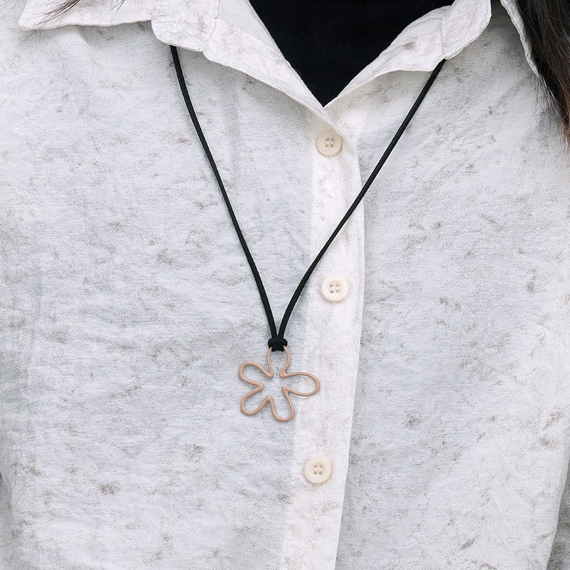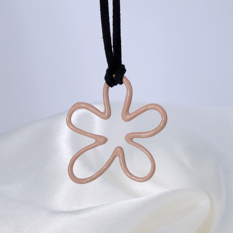 The Enamel Leather Necklace Enamel Flower Pendant is crafted in 925 sterling silver 18k gold plated with fine jewelry craft.