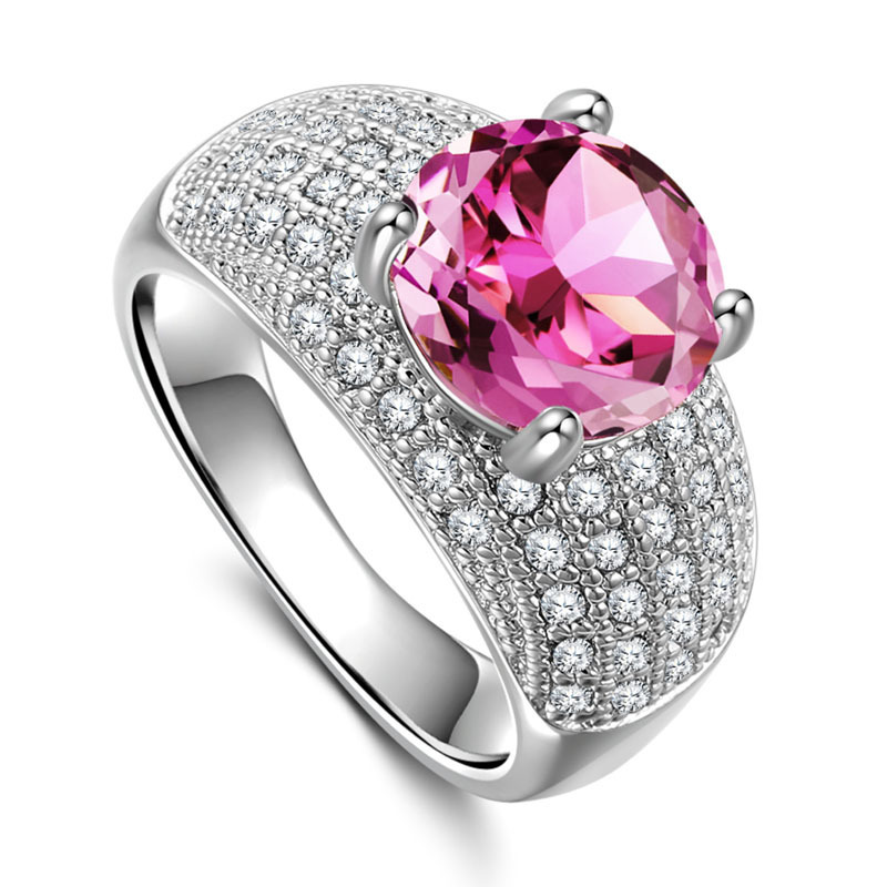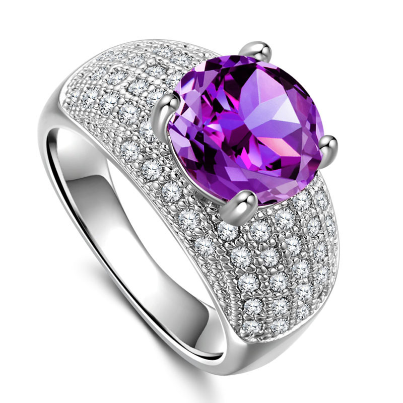 A beautiful simple style women rings can be prong setting with different color like as green, yellow, purpler and red stone on central. It is using S925 sterling silver with 18K white gold plated, simple but elegant.
