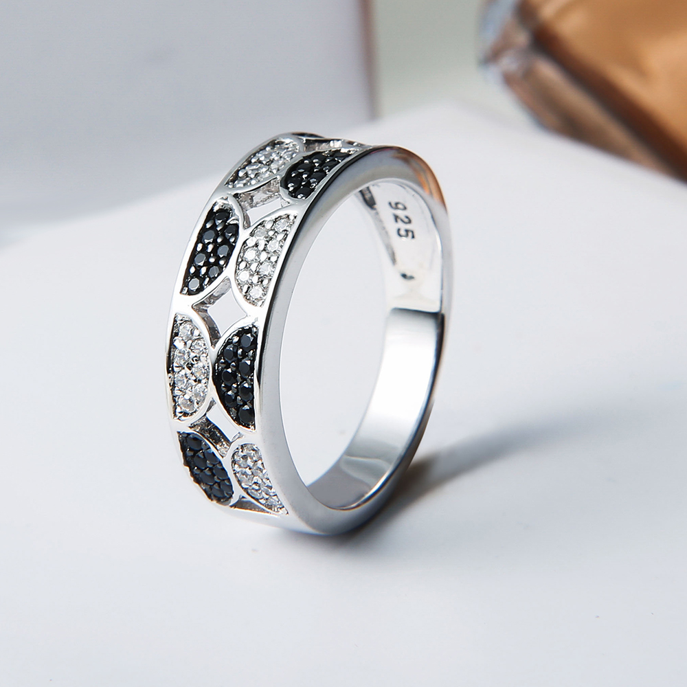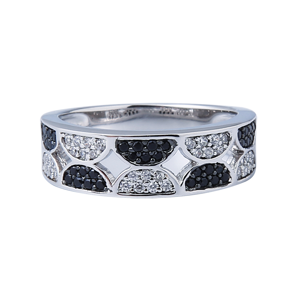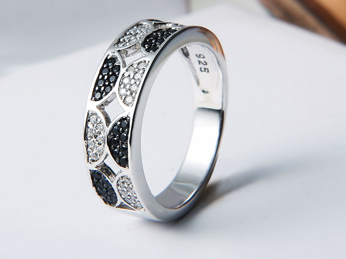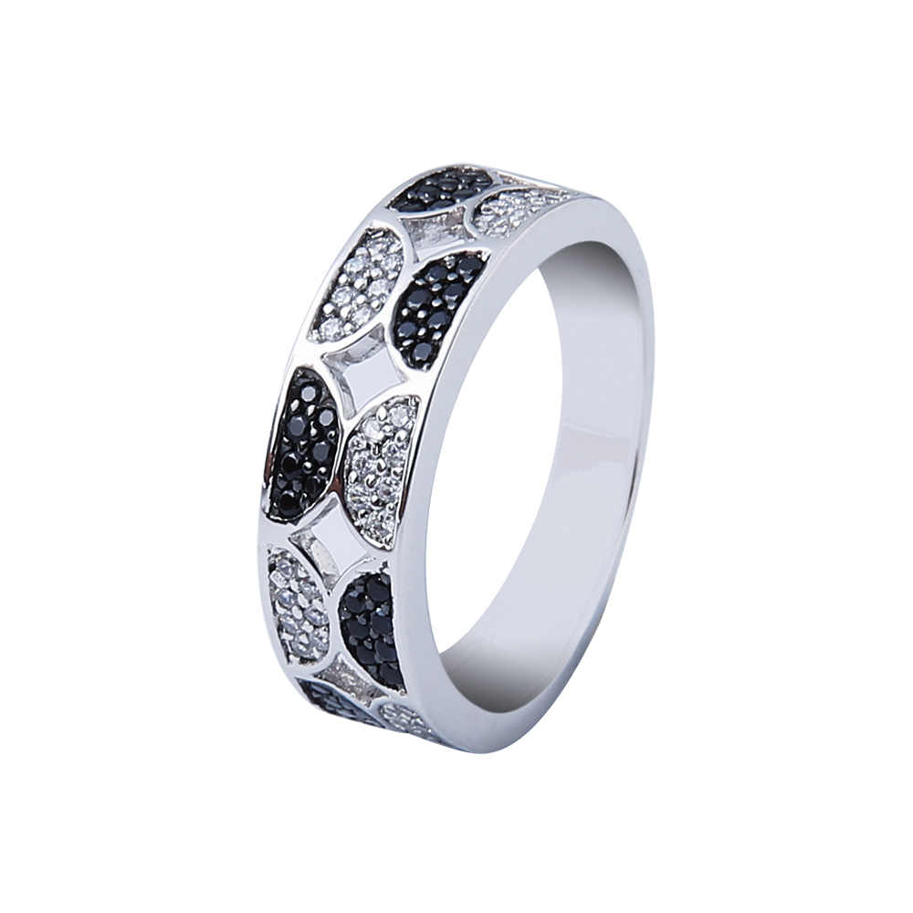 Special black and white football line design sterling silver jewelry ring, setting with many black and white color small AAAA CZ zircon stones. Superior k-gold plating technology makes it more exquisite.