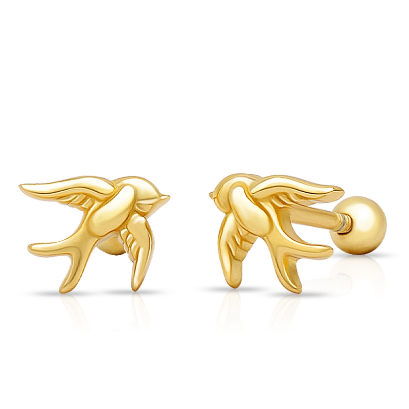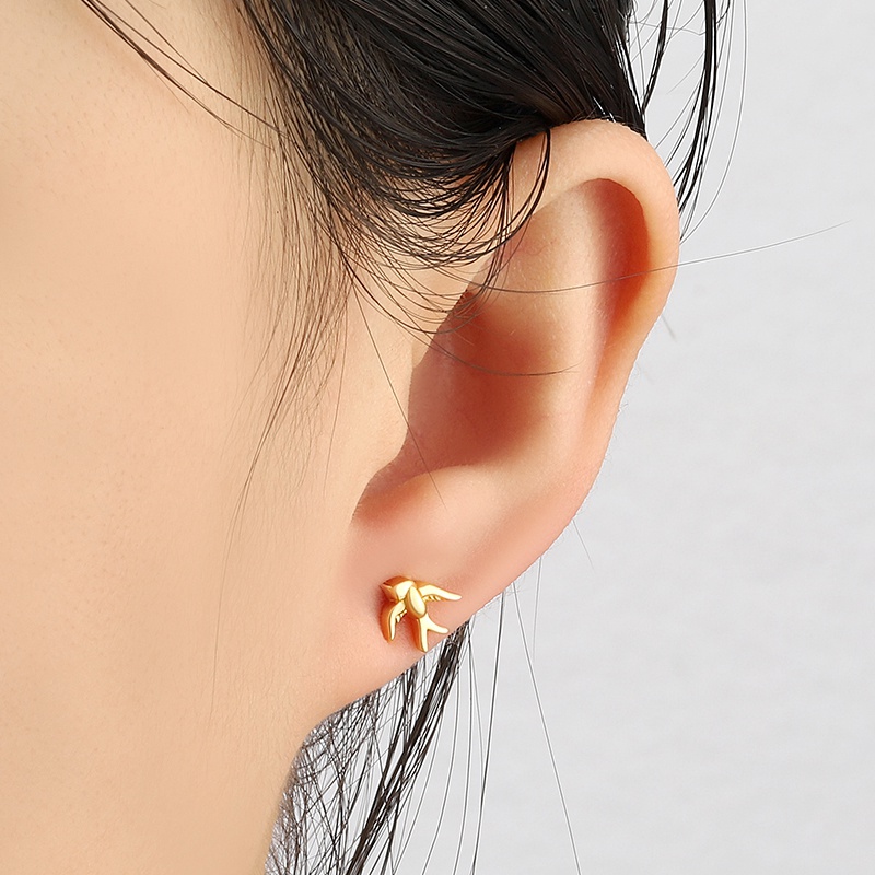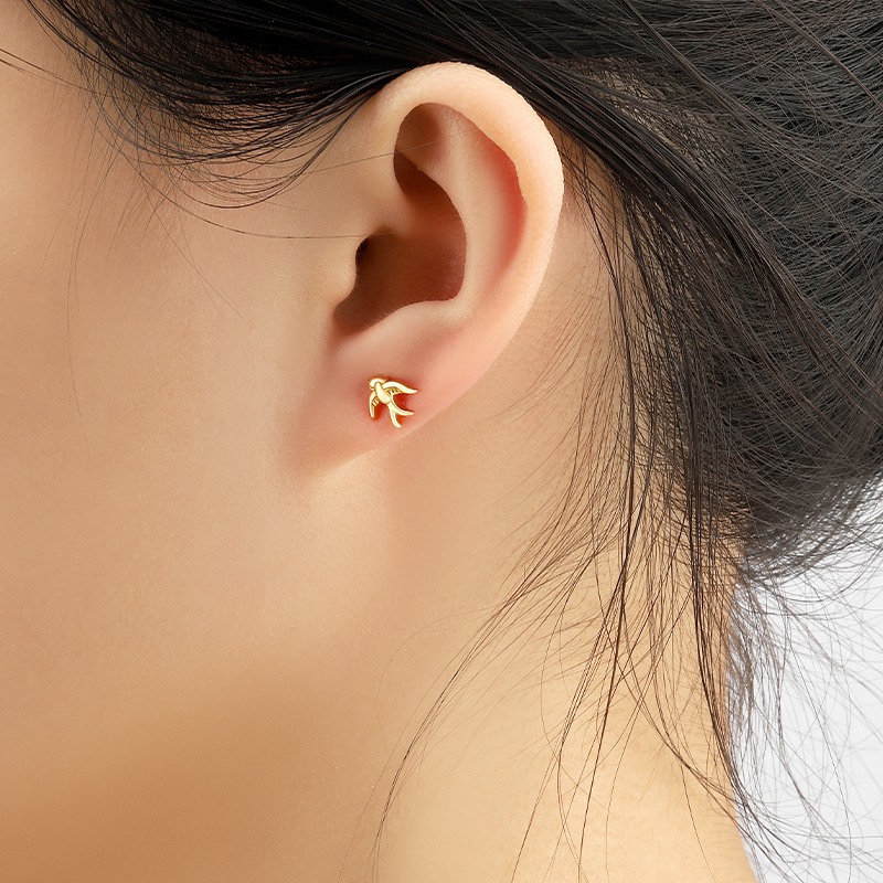 The swallow ear piercings are crafted in 925 sterling silver 18k gold plated with fine jewelry craft.