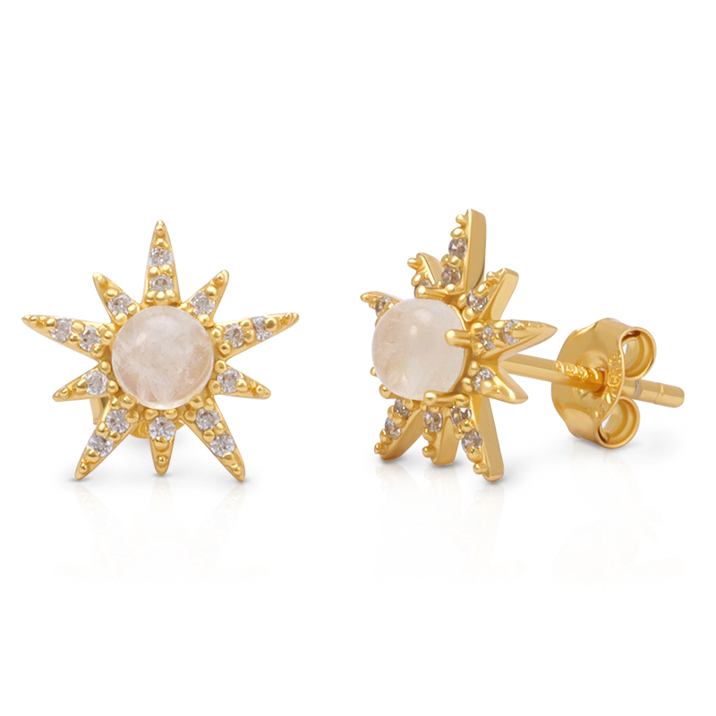 The star stud earring is crafted in 925 sterling silver real gold plated with fine jewelry craft.