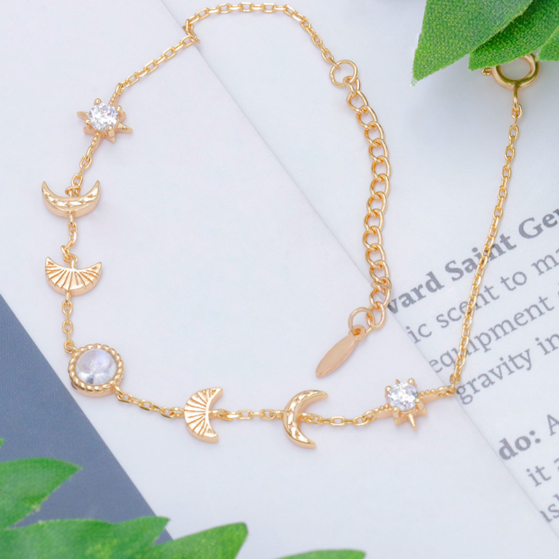 The moon and star bracelet is crafted in 925 sterling silver 14k yellow gold plated with fine jewelry craft.