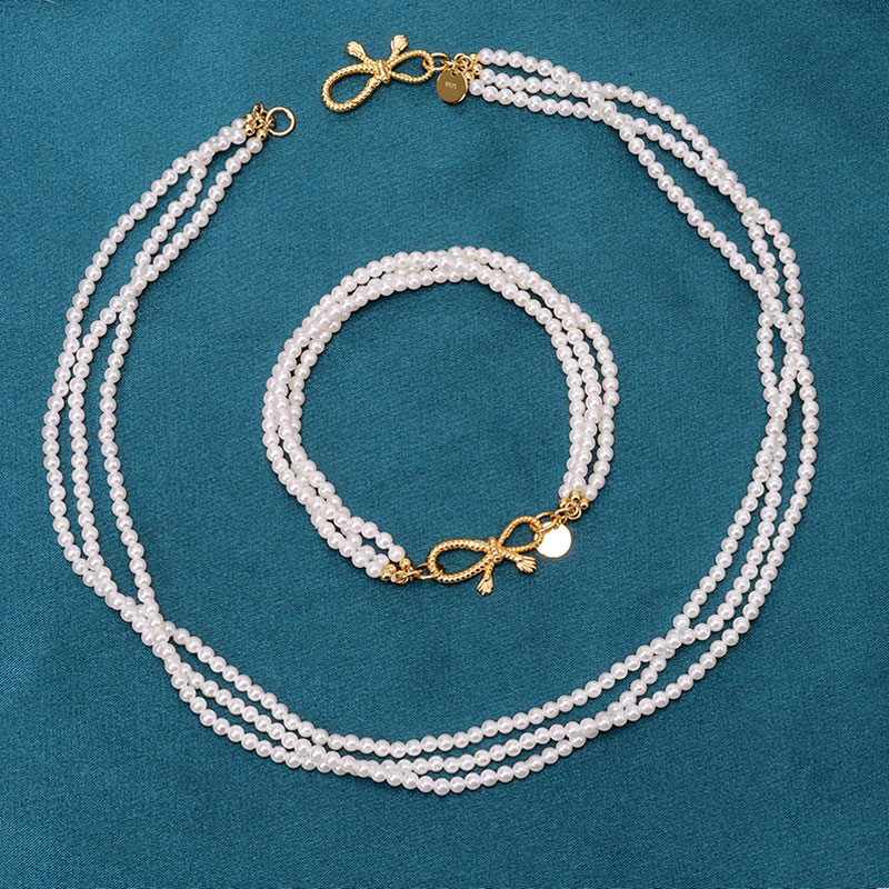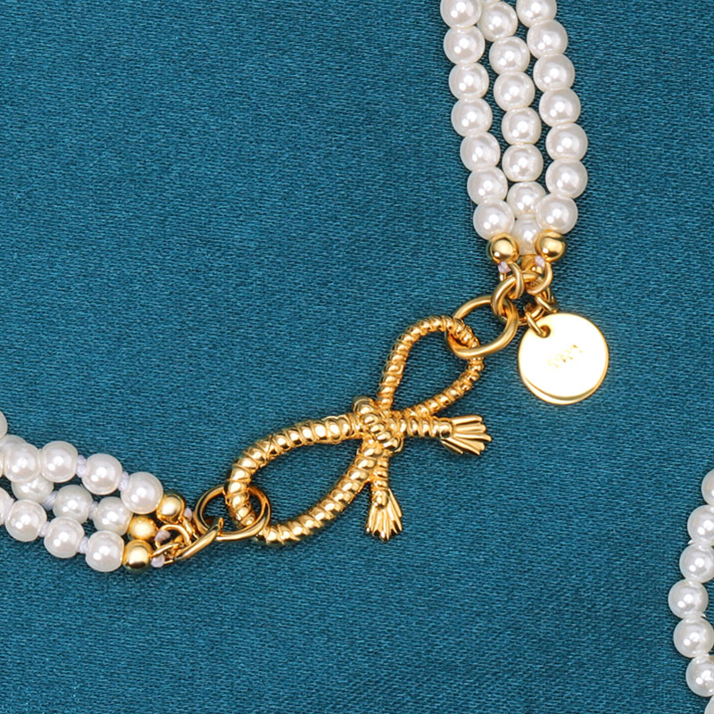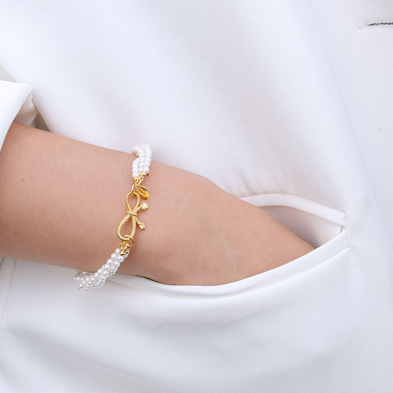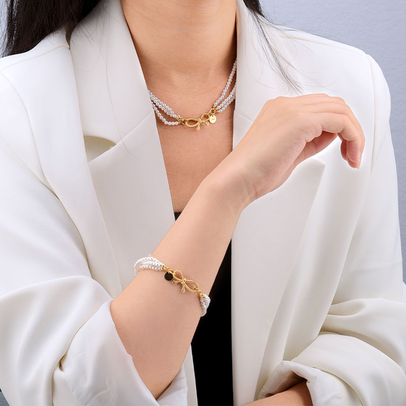 Multi Layer Pearl Bracelet Bow Tie Clasp