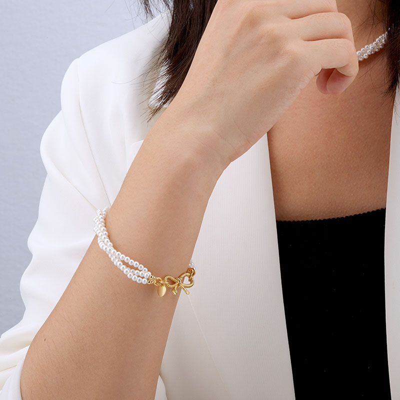 The pearl bracelet is crafted in 925 sterling silver real gold plated with fine jewelry craft.
