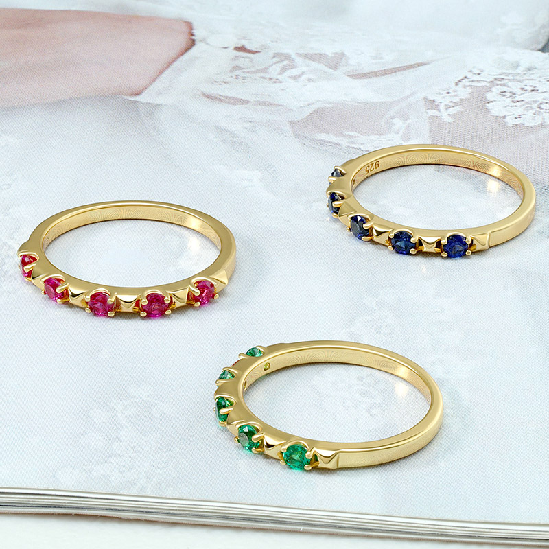 Gold Plated over Sterling Silver, Ruby, Sapphire, Emerald