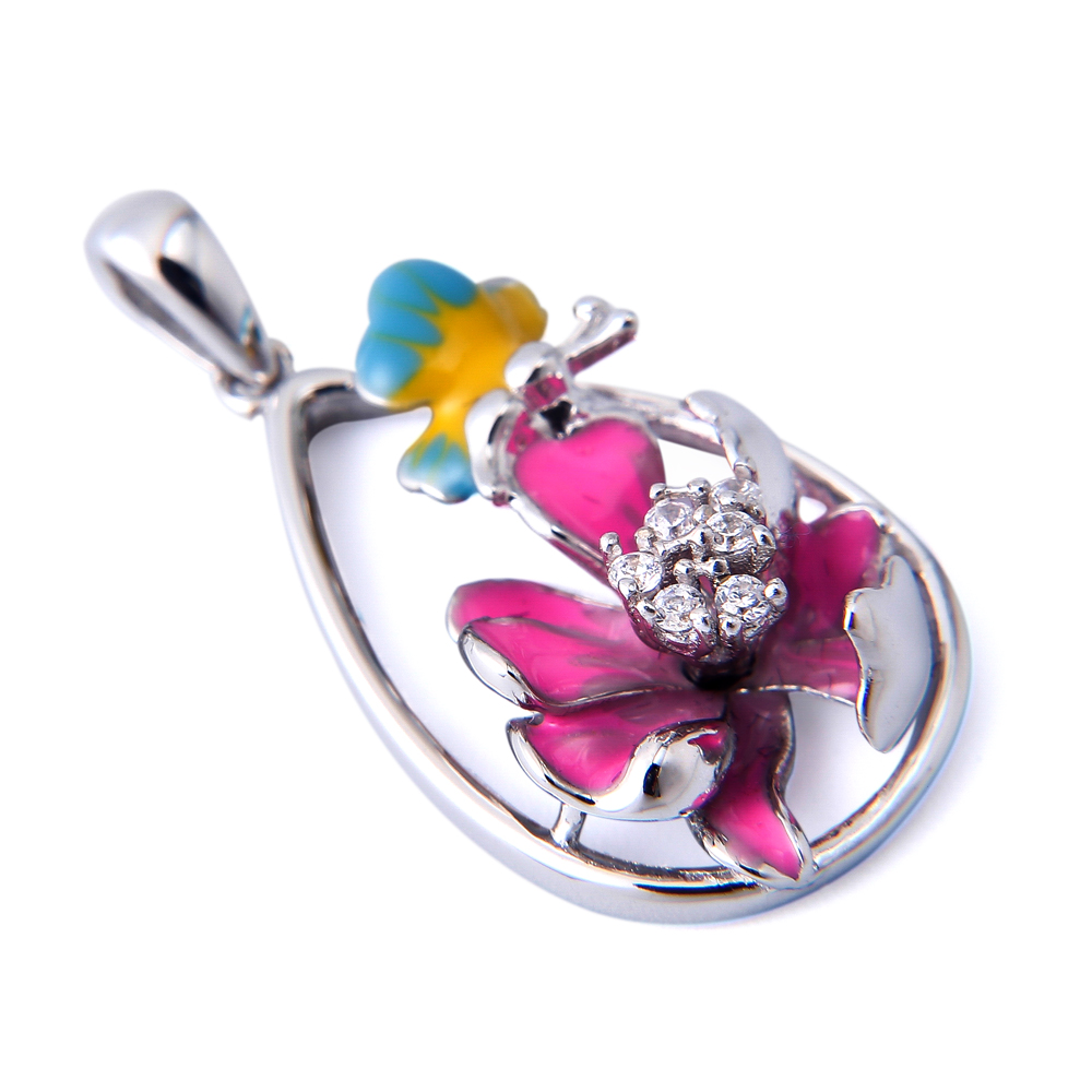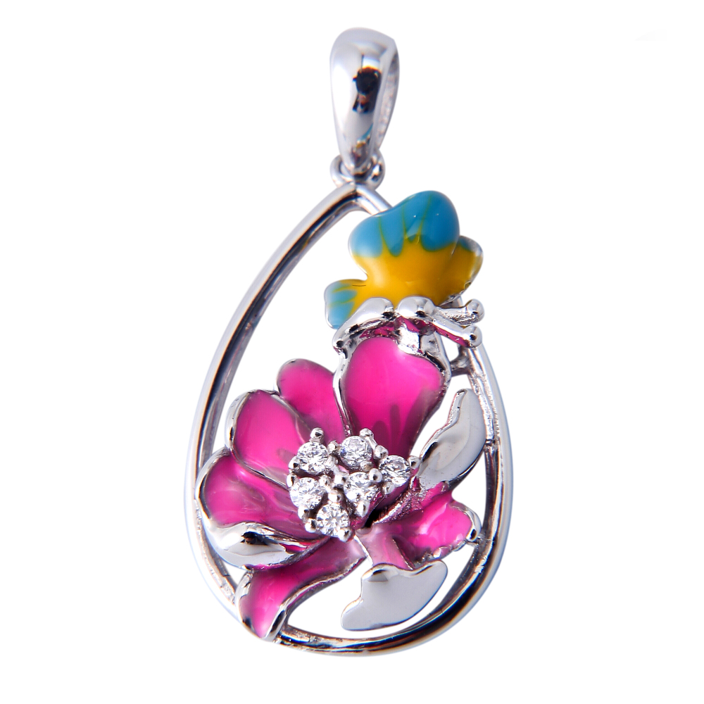 Pendant NecklacesFashion Flower Jewelry Pendant design comes from natural flower in season. With 1.3mm*6 CZ zircon to be the flower pistil and enamel petal around it base on 925 sterling silver in bright.