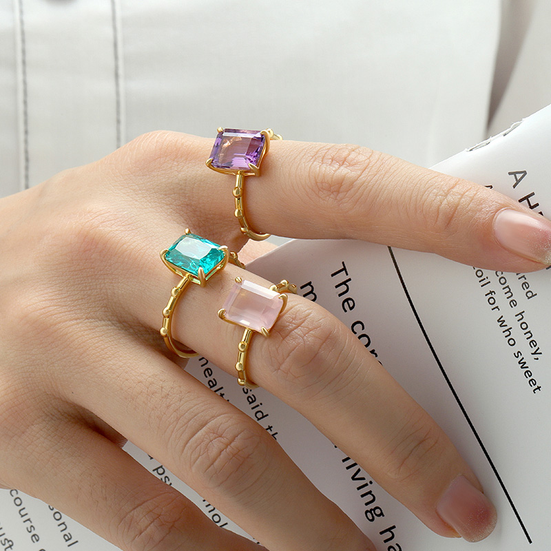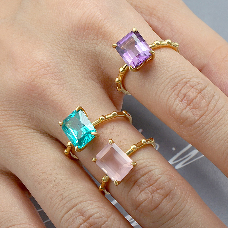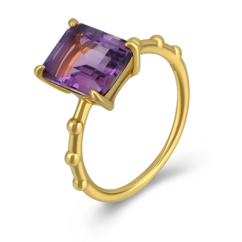 The Octagon Amethyst Ring is crafted in 925 sterling silver 18k gold plated with fine jewelry craft.