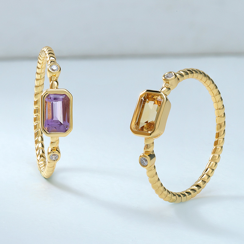 The Octagon Gemstone Ring is crafted in 925 sterling silver 18K gold plated with fine jewelry craft.