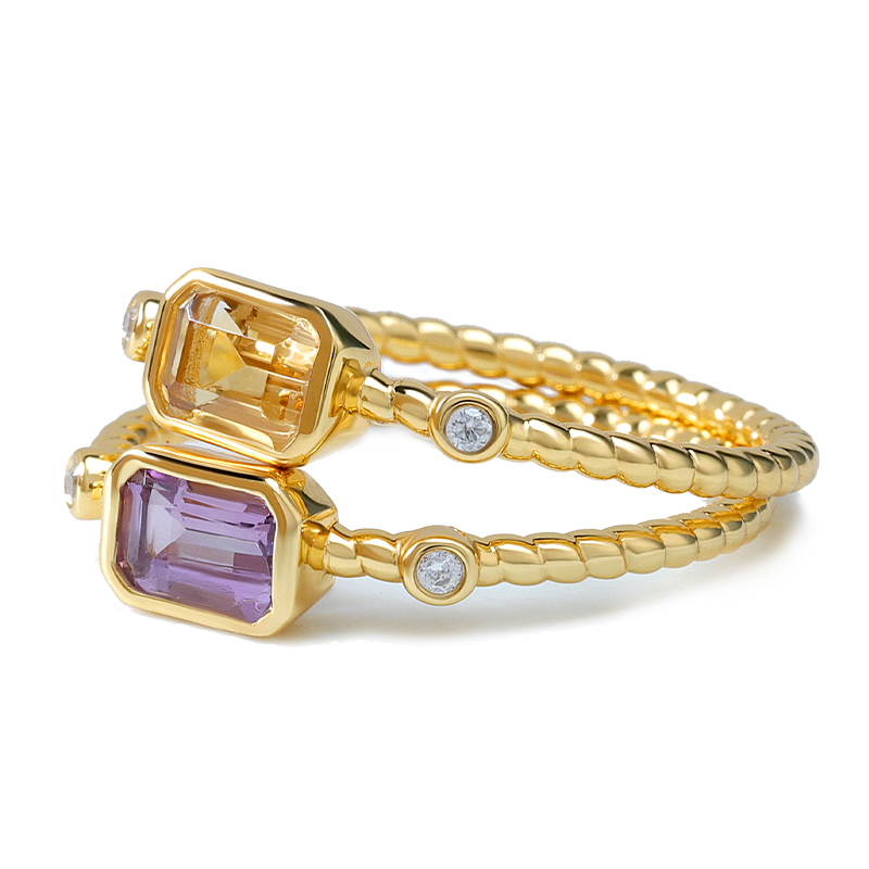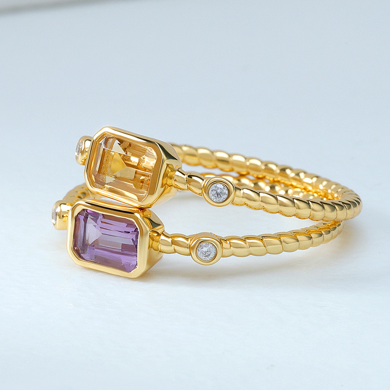 Octagon Gemstone Ring Rope Band