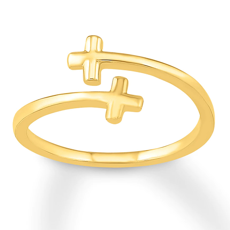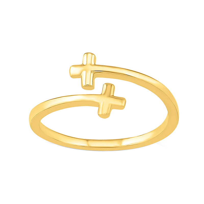 YellowLovely double cross design featuers the ring, simple but cute. It is crafted in 18k yellow gold.