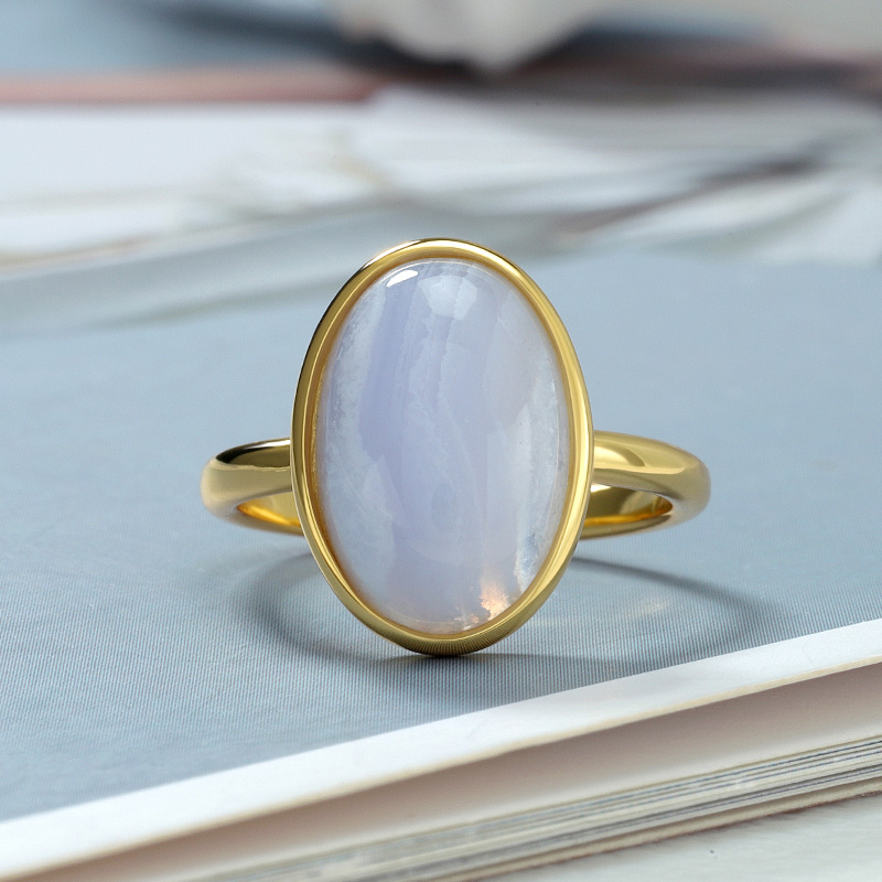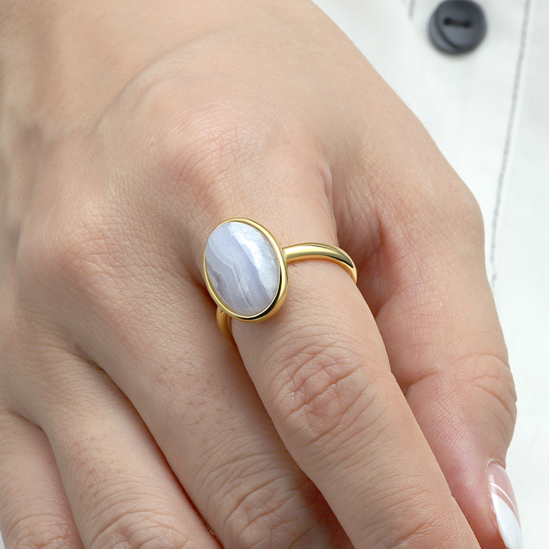 Oval Blue Primrose Colour Agate Ring