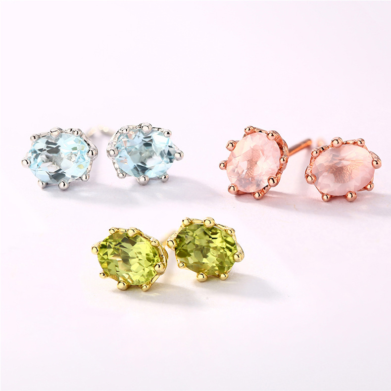The women fashion stud earrings jewelry is in simple design, prong setting the stone as olivine, ruby and quartz etc, easy to showing the stone in big and bright.
