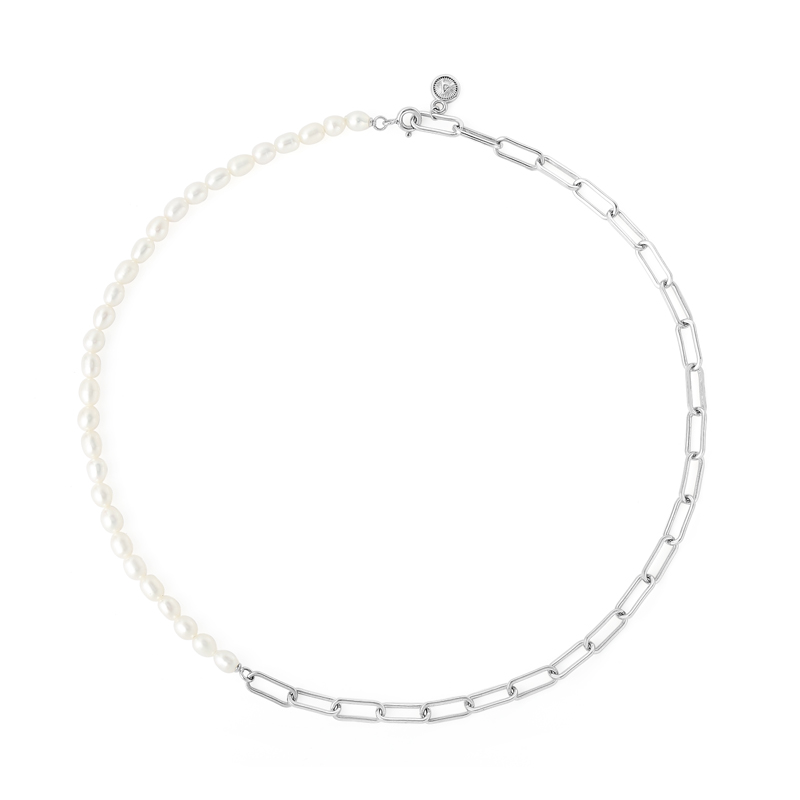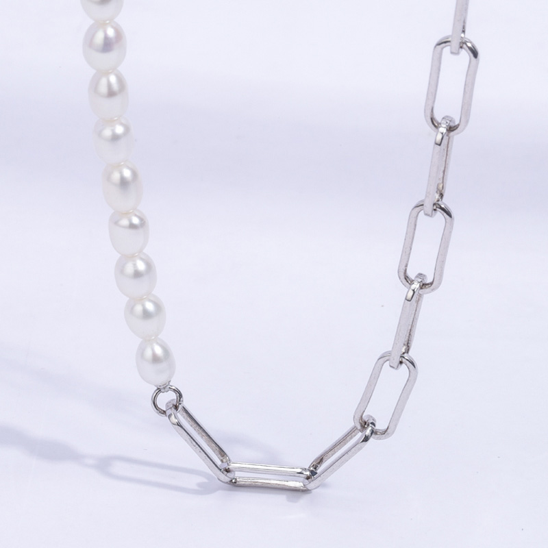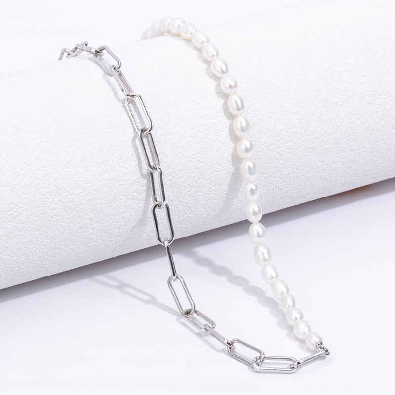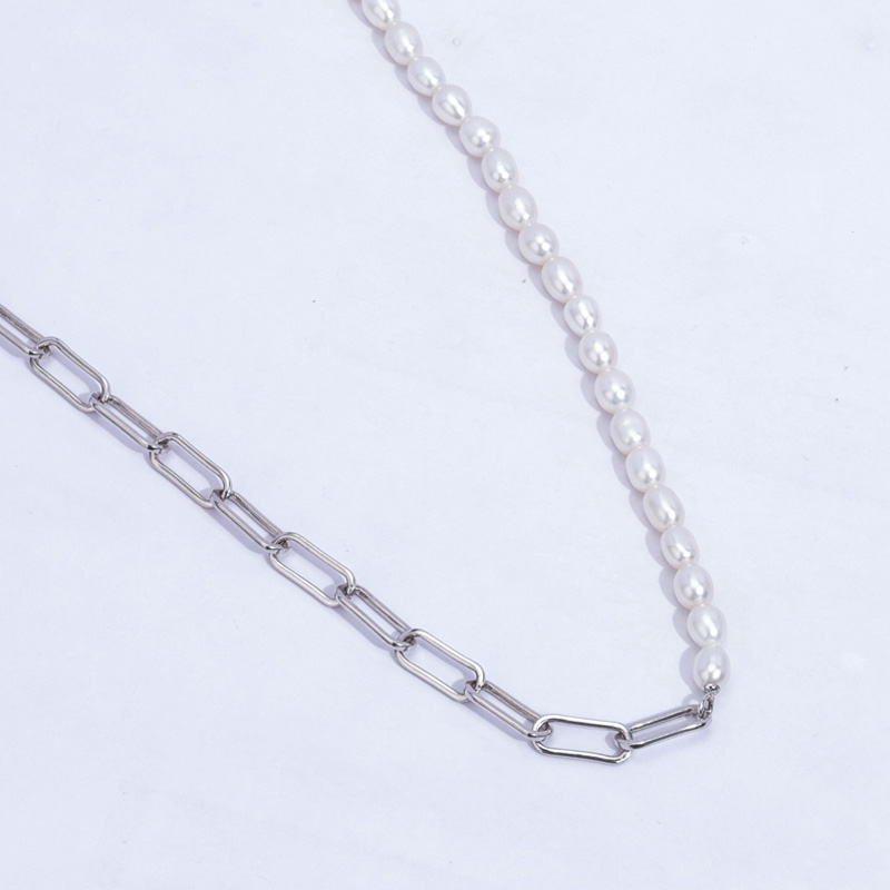 14gThe paper clip pearl necklace is crafted in copper 18k white gold plated with fine jewelry craft.