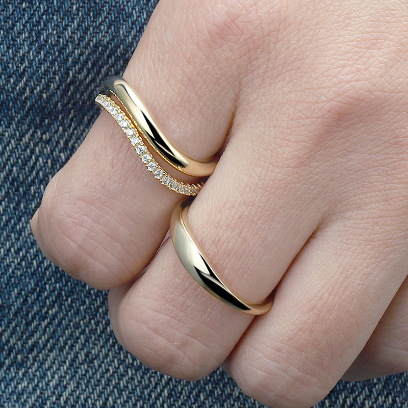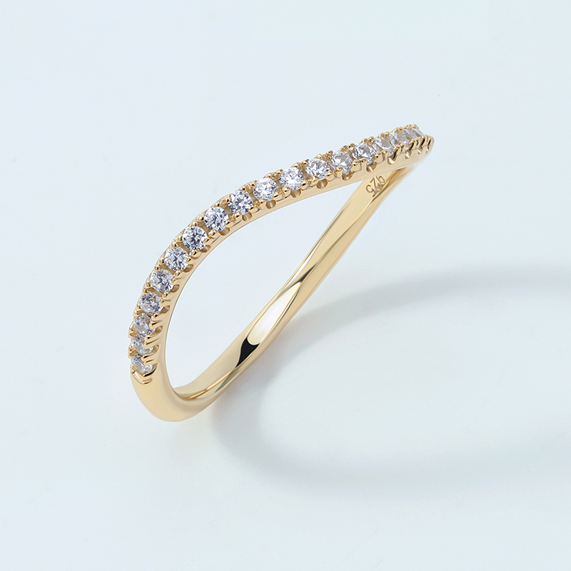 The Pave Slim Wave Ring is crafted in 925 sterling silver 14k gold plated with fine jewelry craft.